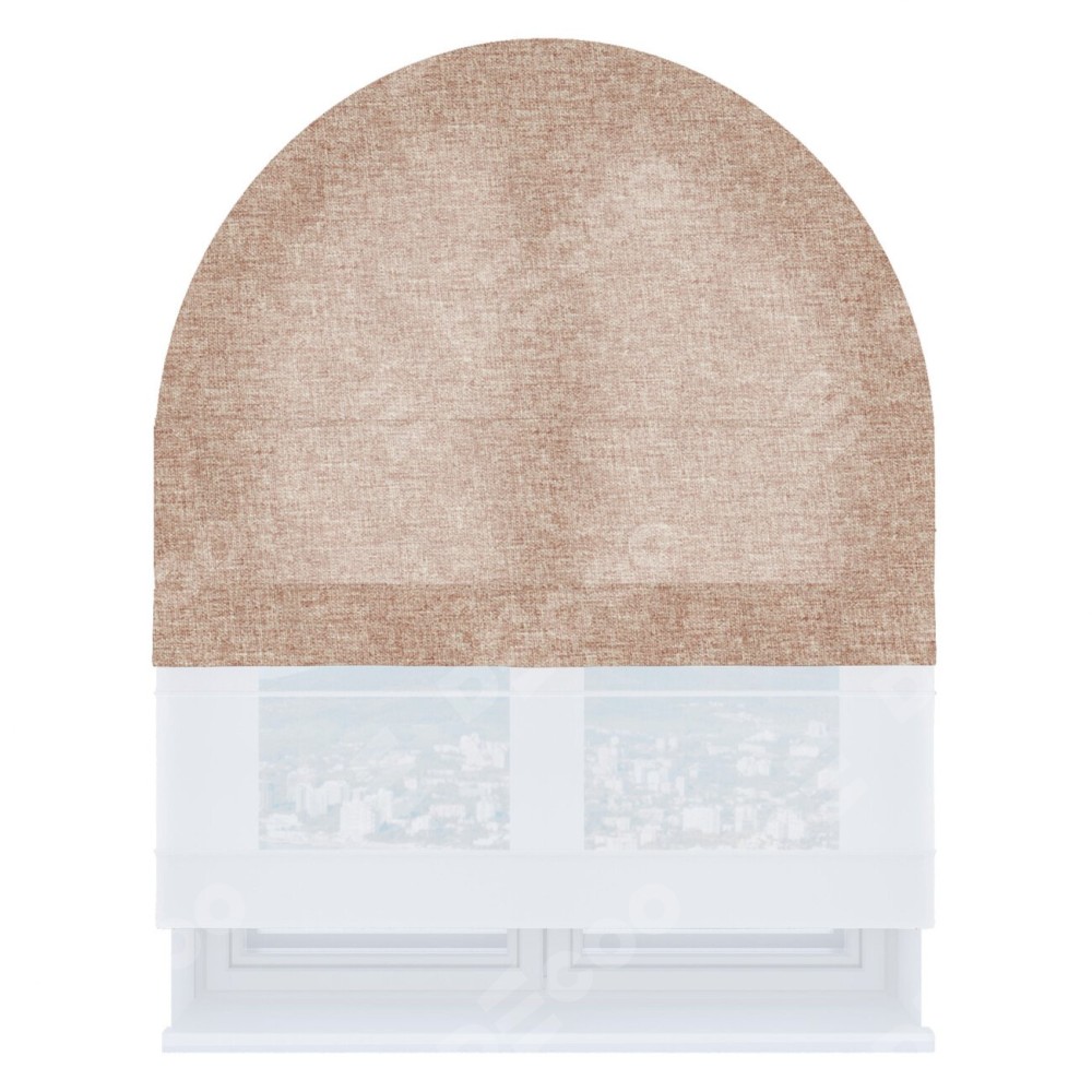 Римская штора день-ночь производителя «Cortin», используется для арочного проёма, пошита из двух полотен, с лицевой стороны лён кашемир розовая пудра артикул 21619, вторая ткань тюль (по стандарту комплектуется тюль белого цвета артикул V-01). Штора шьётся по индивидуальным размерам, для данного типа римской шторы возможная ширина от 60 до 300 см. Удобное управление каждой шторой отдельно.