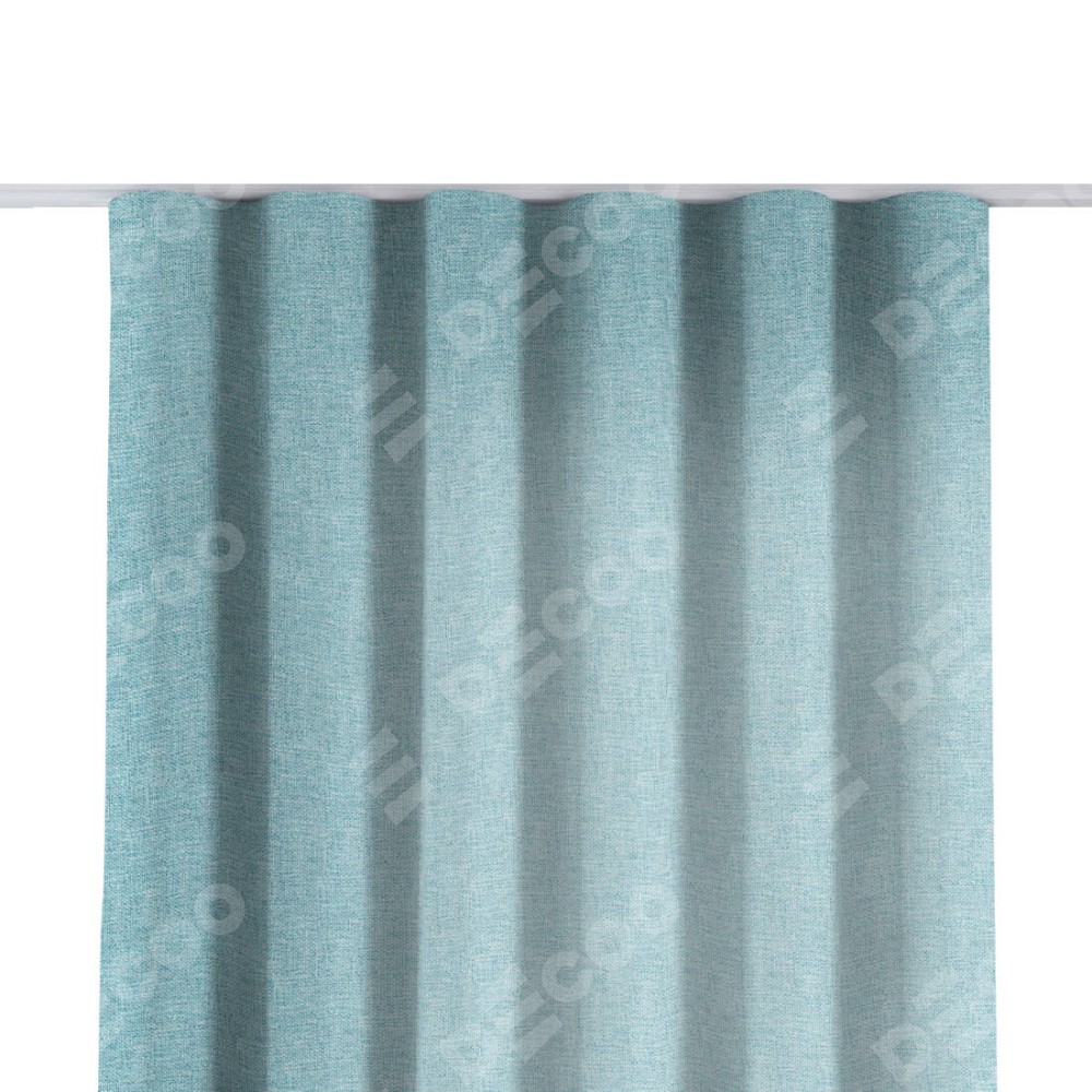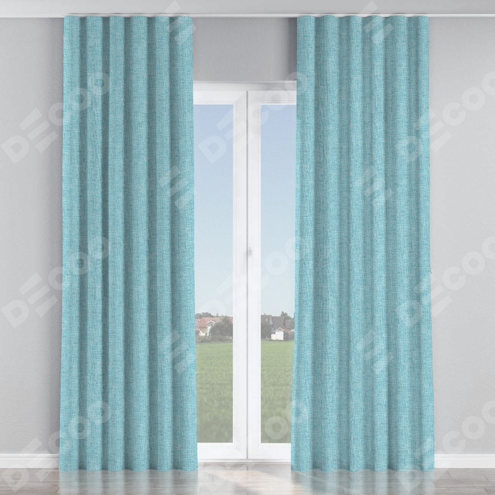 Комплект прямых штор, от производителя «Cortin», пошиты из ткани лён кашемир голубой, артикул ткани 21616. С изнаночной стороны в верхней части штор пристрачивается шторная лента с декоративными складками «Волна». Для создания элегантных складок прямые шторы шьются по стандарту с коэффициентом 1:2 (на 100 см. ширины проёма 200 см. ширины ткани).