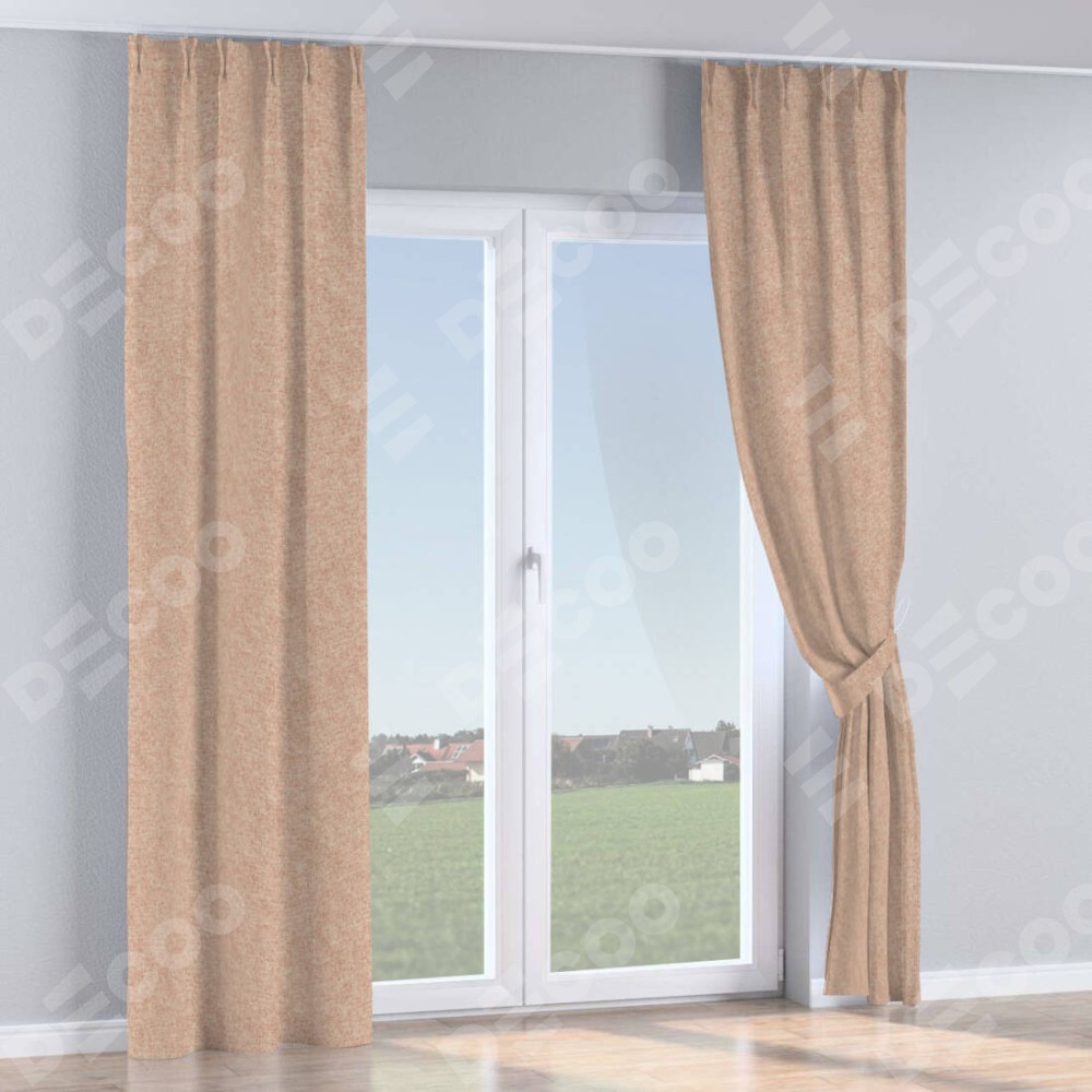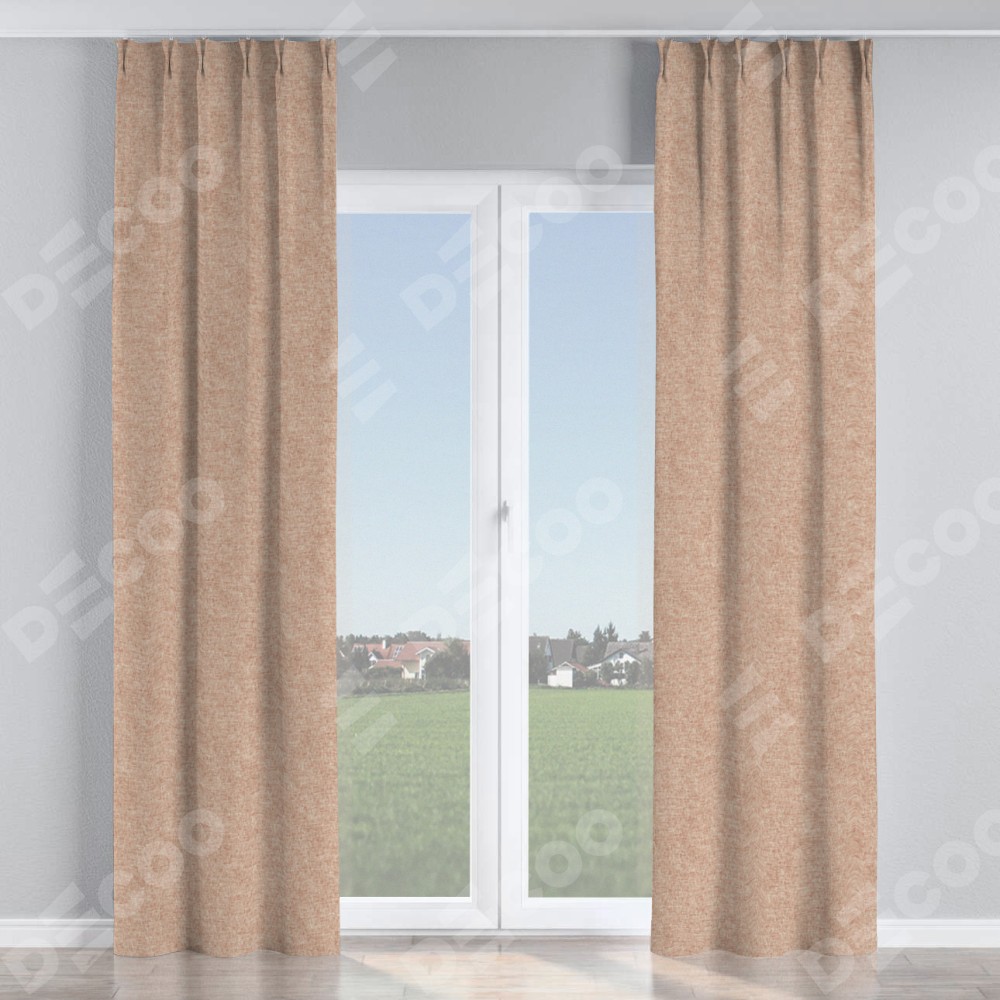 Комплект прямых штор, от производителя «Cortin», пошиты из ткани лён кашемир розовая пудра, артикул ткани 21619. С изнаночной стороны в верхней части штор пристрачивается шторная лента с декоративными складками «Кустик». Для создания элегантных складок прямые шторы шьются по стандарту с коэффициентом 1:2 (на 100 см. ширины проёма 200 см. ширины ткани).