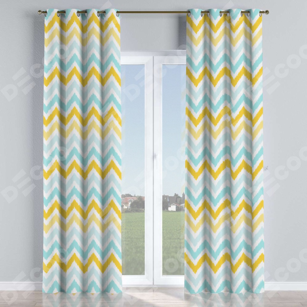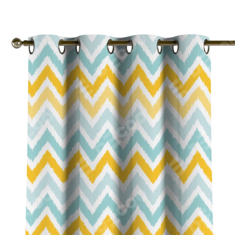 Комплект штор на люверсах «Икат шеврон» отлично подойдёт для интерьера для дома, кухня и гостиная.