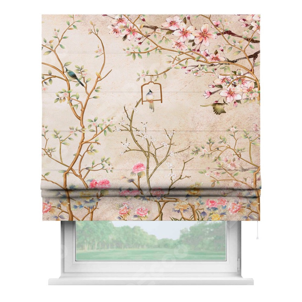 Римская штора «Кортин» для проема «Весенний сад» предоставлена в следующих характеристиках: