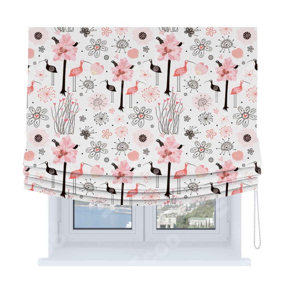 Римская штора Soft с мягкими складками, «Любопытные птички»
