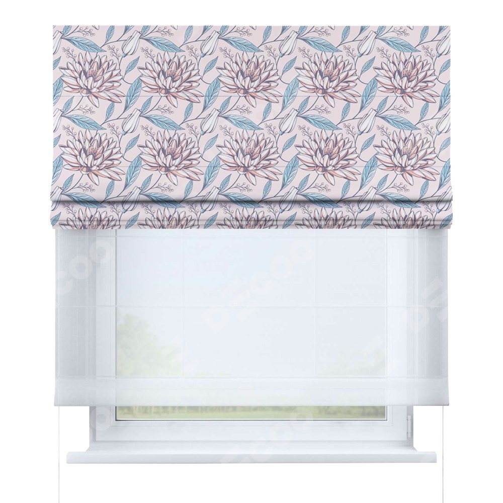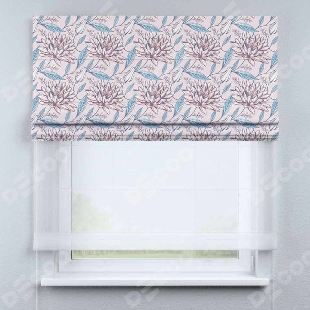 Римская штора день-ночь производителя «Cortin», используется для проёма, пошита из двух полотен, с лицевой блэкаут с нанесением сублимационной печати «Романтический день», вторая ткань тюль (по стандарту комплектуется тюль белого цвета артикул V-01). Имеет универсальный механизм и подходит для монтажа: на потолок, на стену и в нишу.