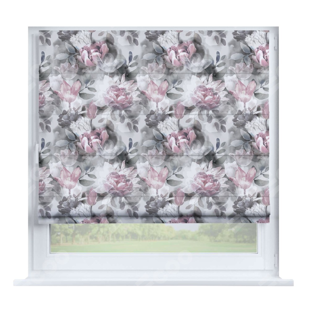 Римская штора производителя «Cortin», устанавливается на створку окна, пошита из ткани блэкаут с нанесением сублимационной печати «Цветочная композиция». Штора шьётся по индивидуальным размерам, для данного типа римской шторы возможная ширина от 35 до 150 см., высота до 250 см.