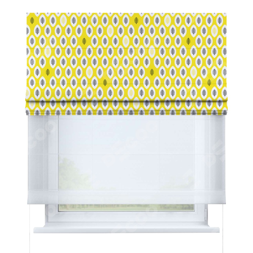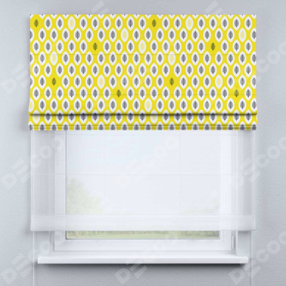 Римская штора комплект «Кортин» день-ночь «Солнечные листья» отлично подойдёт для интерьера: в кухню, в детскую и на балкон.
