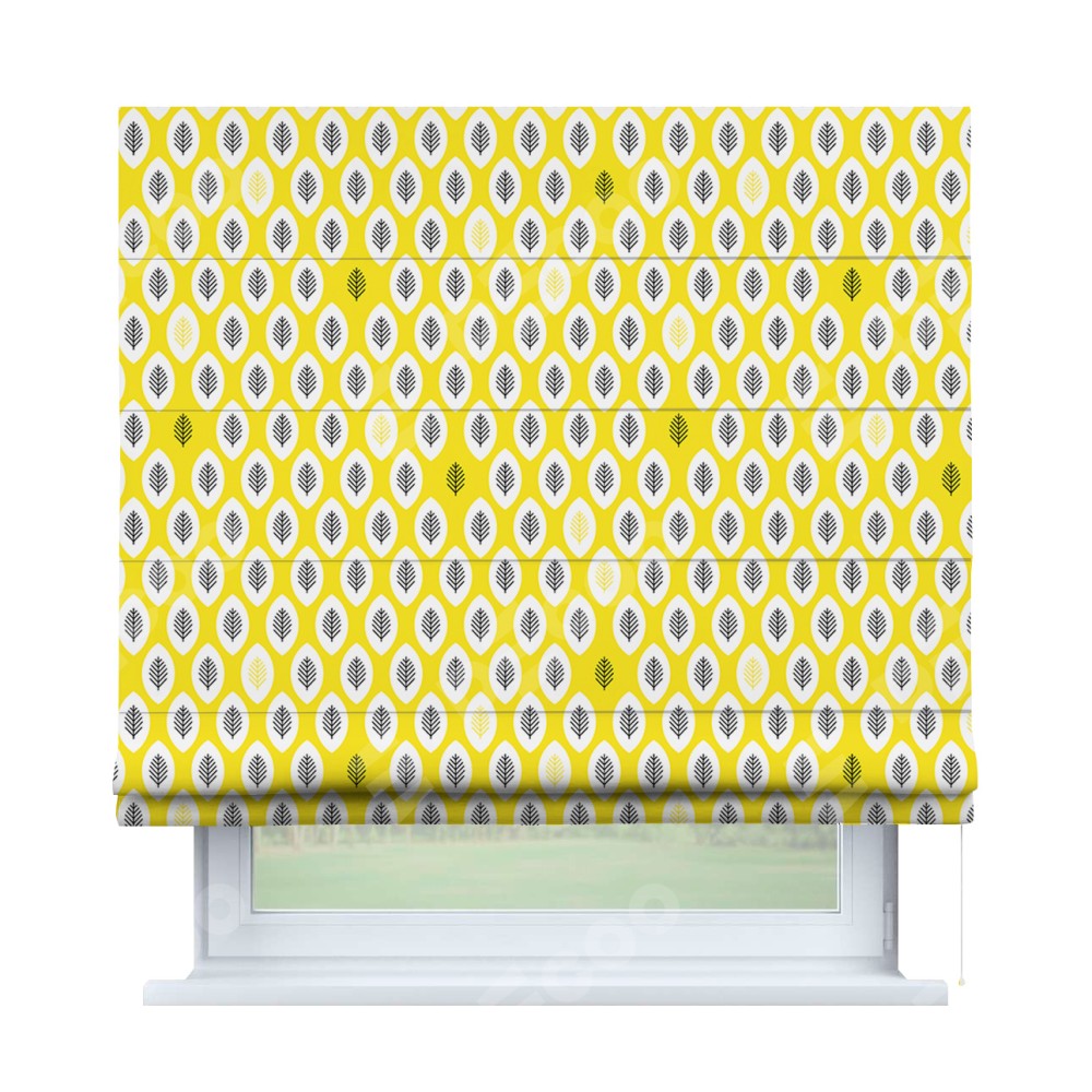 Римская штора производителя «Cortin», используется для проёма, пошита из ткани блэкаут с нанесением сублимационной печати «Солнечные листья». Имеет универсальный механизм и подходит для монтажа: на потолок, на стену и в нишу.