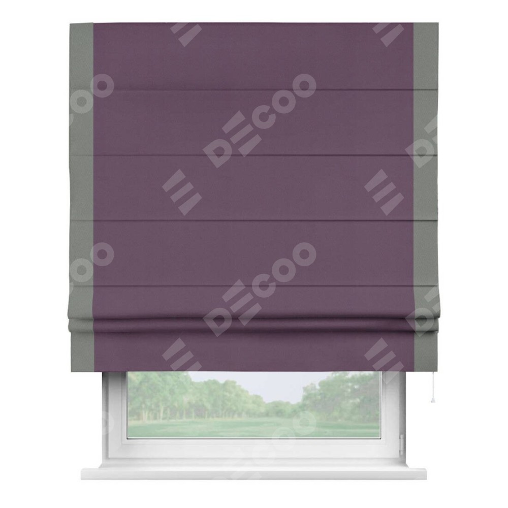 Римская штора производителя «Cortin», используется для проёма, пошита из ткани блэкаут однотонный фуксия, артикул ткани 88303. Отделка шторы кантом «Стрим Дуо», ткань для канта используется из блэкаута однотонного разной расцветки на выбор. Имеет универсальный механизм и подходит для монтажа: на потолок, на стену и в нишу.