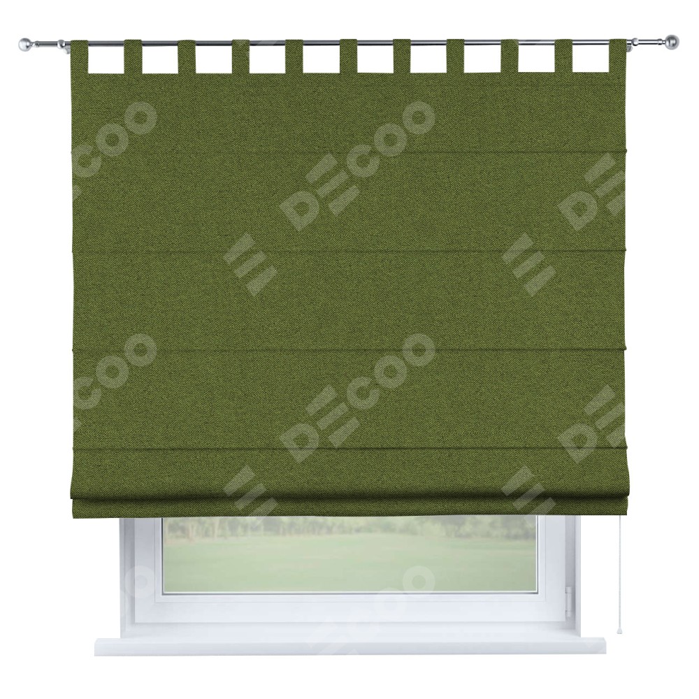 Римская штора производителя «Cortin», используется для проёма, пошита из ткани лён блэкаут оливковый, артикул ткани 69516. Данная модель пошита на петлях, комплектуется на выбор круглым карнизом и подходит для монтажа на стену. Римская штора на петлях имеет простую систему регулировки высоты, отличительным преимуществом данной модели является простой способ монтажа. Достаточно повесить ее на трубу и штора готова!