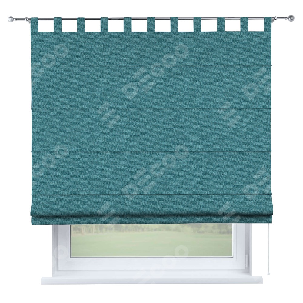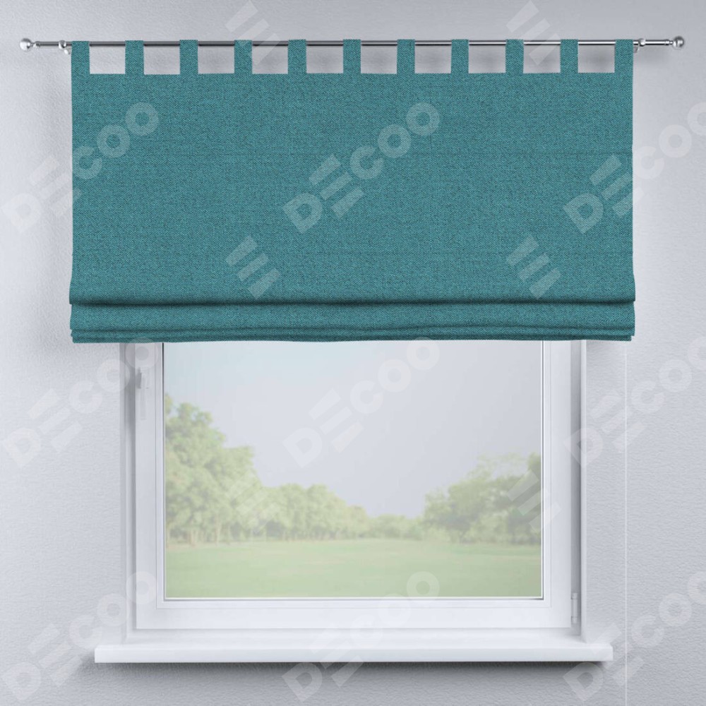 Римская штора на петлях «Кортин», ткань лён блэкаут, синий