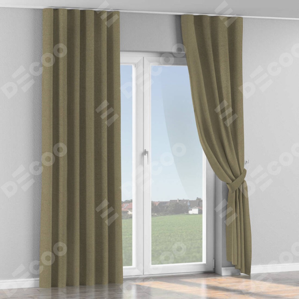 Комплект прямых штор, от производителя «Cortin», пошиты из ткани лён блэкаут бежевый, артикул ткани 69435. С изнаночной стороны в верхней части штор пристрачивается шторная лента с декоративными складками «Волна». Для создания элегантных складок прямые шторы шьются по стандарту с коэффициентом 1:2 (на 100 см. ширины проёма 200 см. ширины ткани).