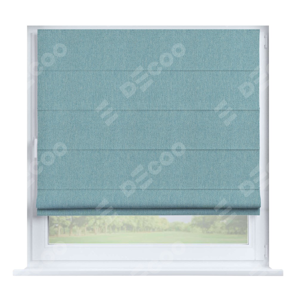 Римская штора производителя «Cortin», устанавливается на створку окна, пошита из ткани твид блэкаут небесно-голубой, артикул 21578. Штора шьётся по индивидуальным размерам, для данного типа римской шторы возможная ширина от 35 до 150 см., высота до 250 см.
