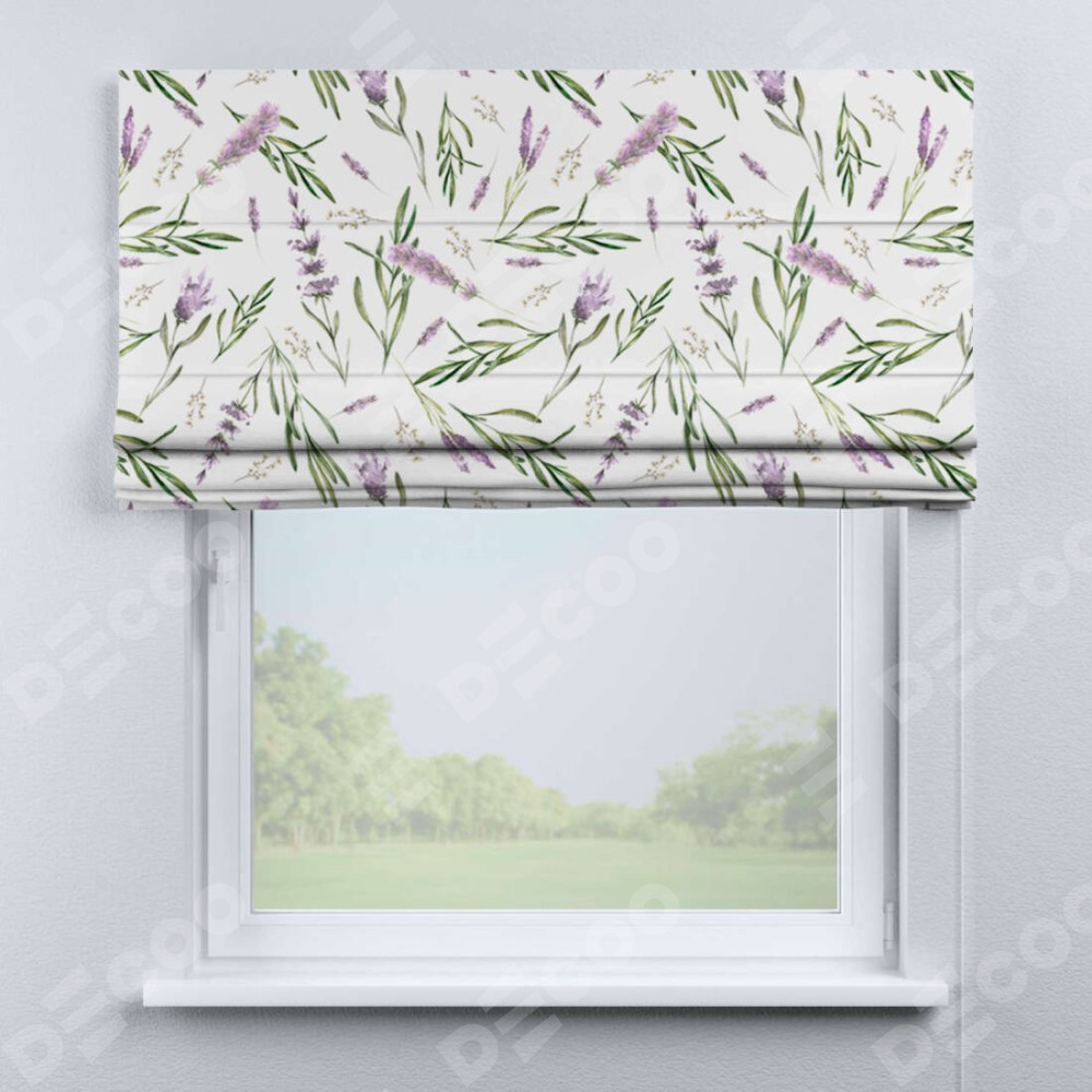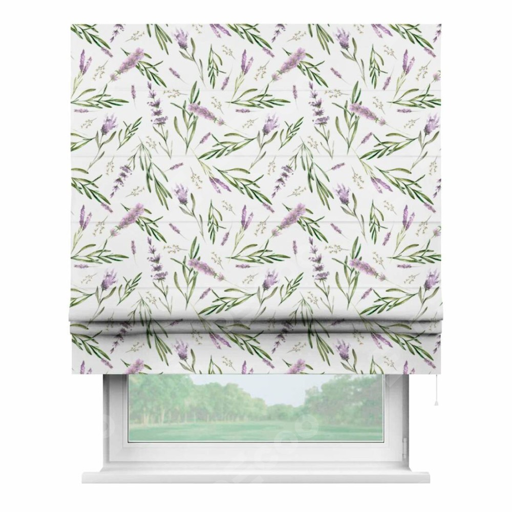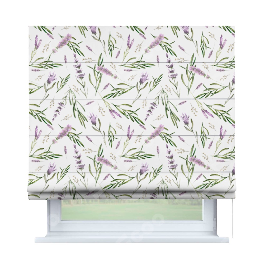 Римская штора «Кортин» для проема «Лавандовое поле» предоставлена в следующих характеристиках:
