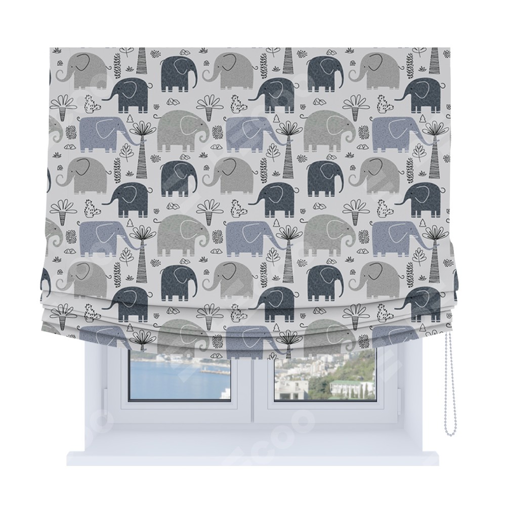 Римская штора Soft с мягкими складками, «Серые слоники»