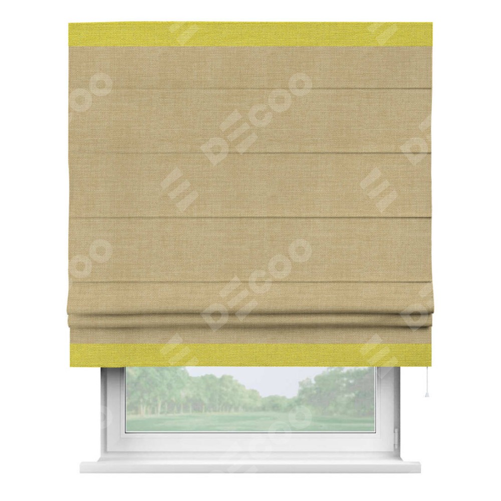 Римская штора «Кортин» с кантом Горизонт, для проема, ткань лён бежевый