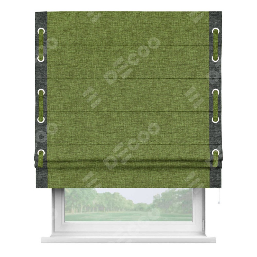 Римская штора «Кортин» с кантом Стрим Дуо (люверсы с пояском), для проема, ткань рогожка димаут, салатовый