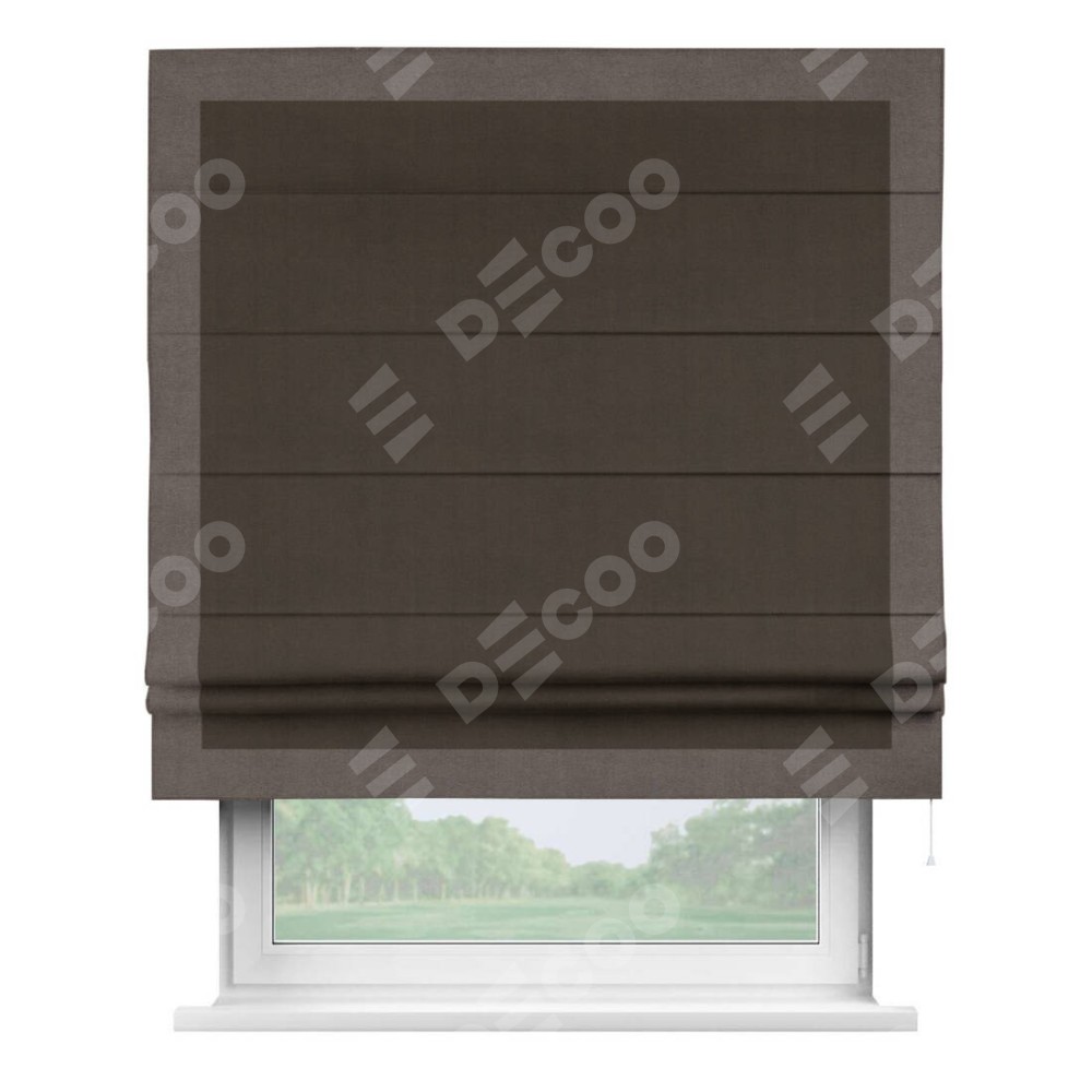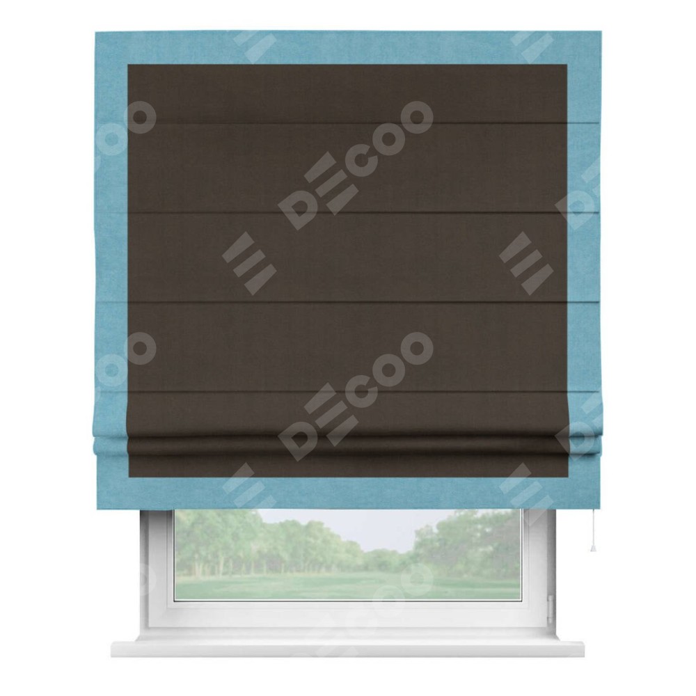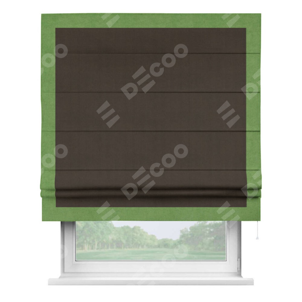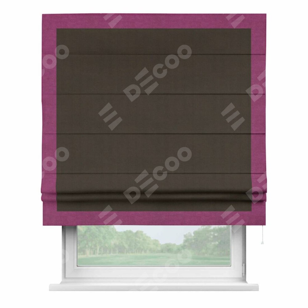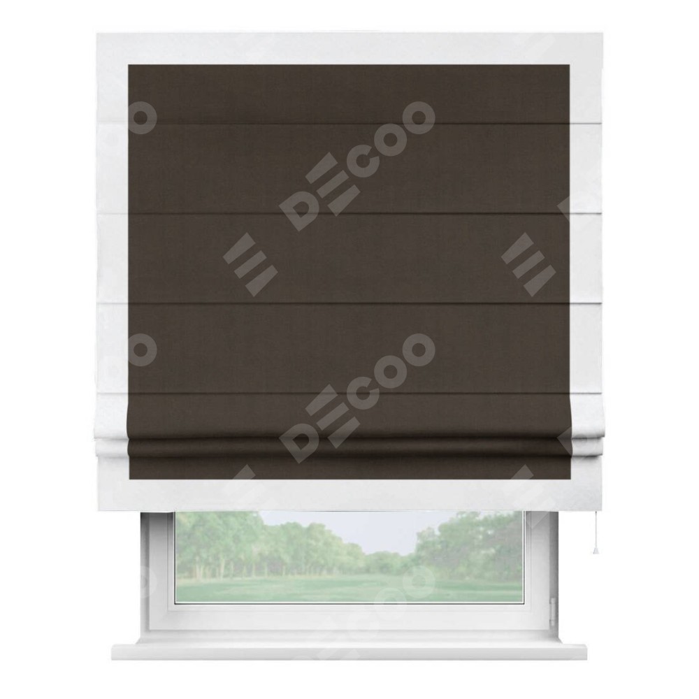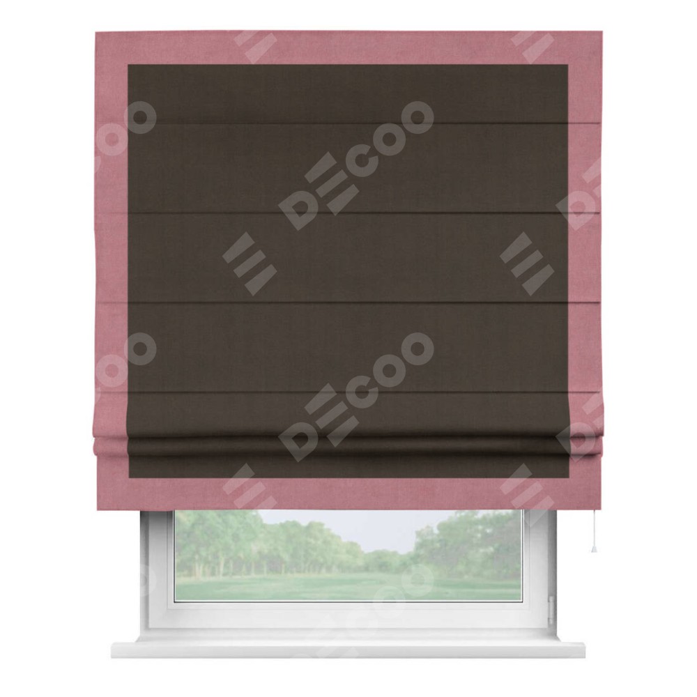 Римская штора «Кортин» с кантом Чесс, для проема, ткань вельвет тёмно-коричневый