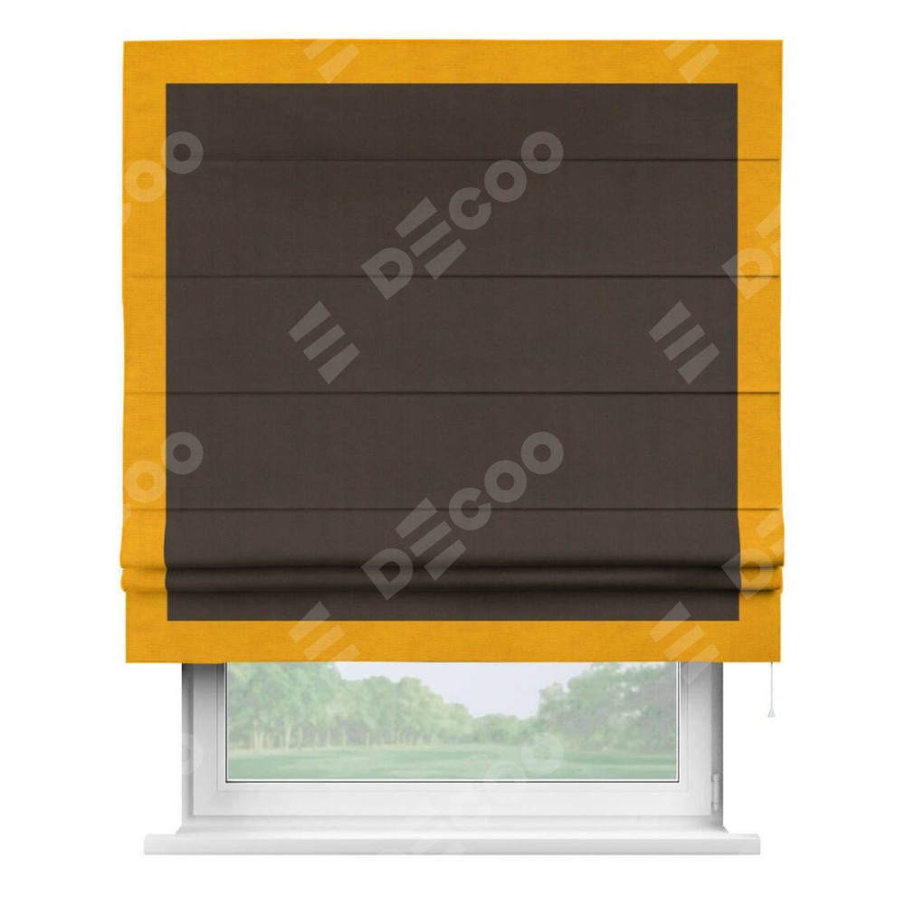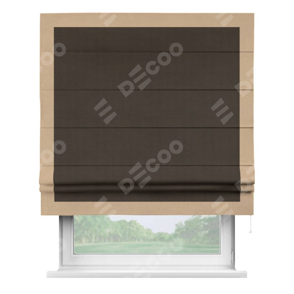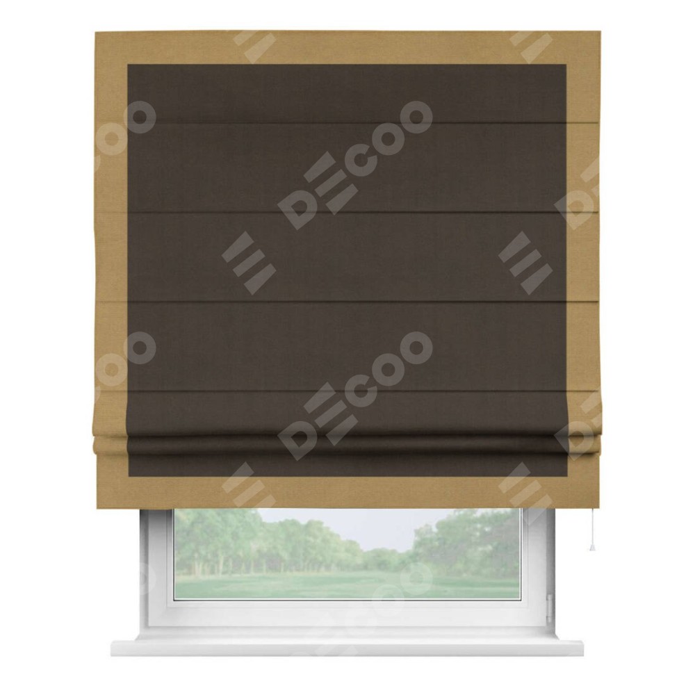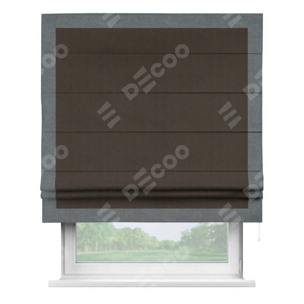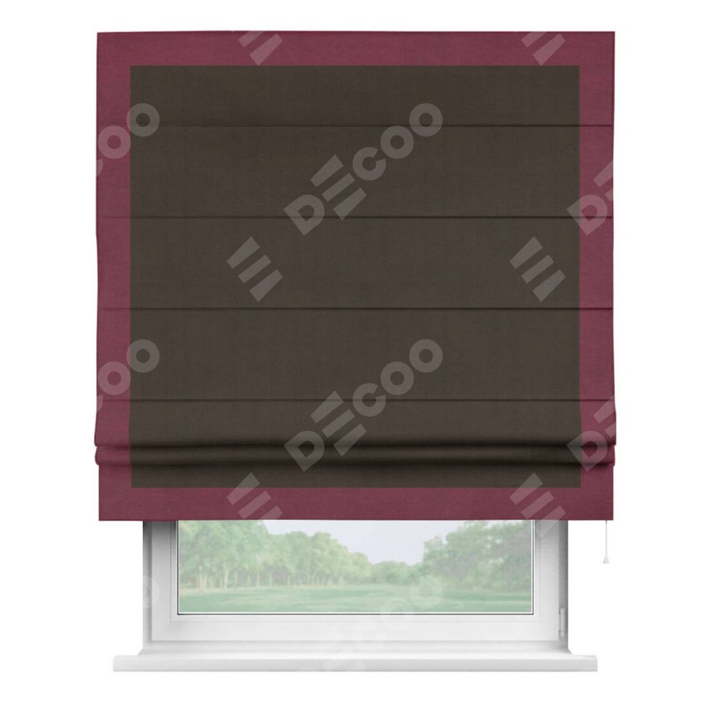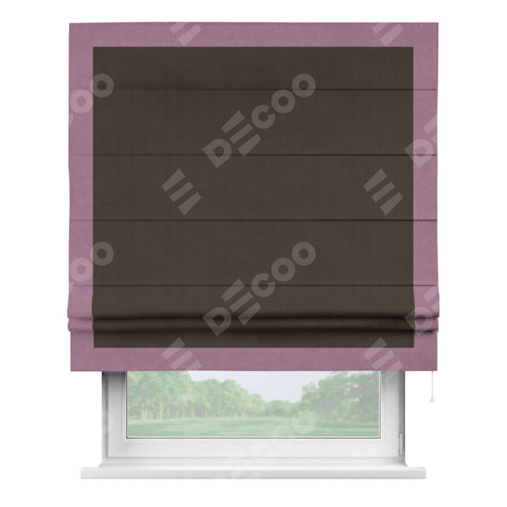 Римская штора «Кортин» с кантом Чесс, для проема, ткань вельвет тёмно-коричневый