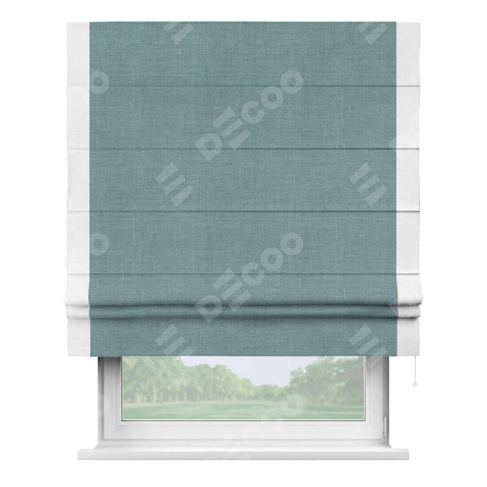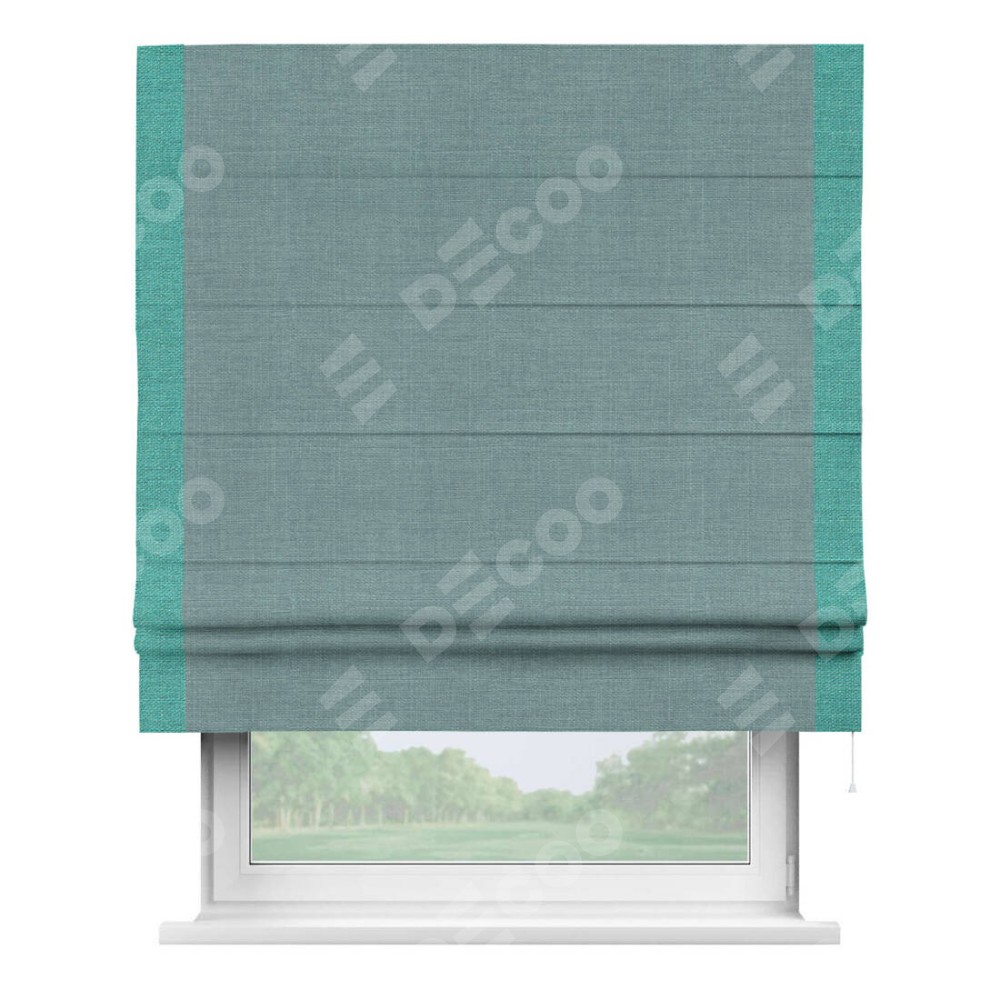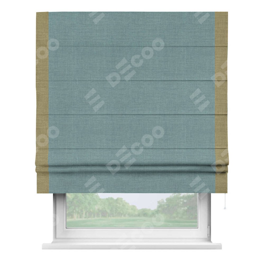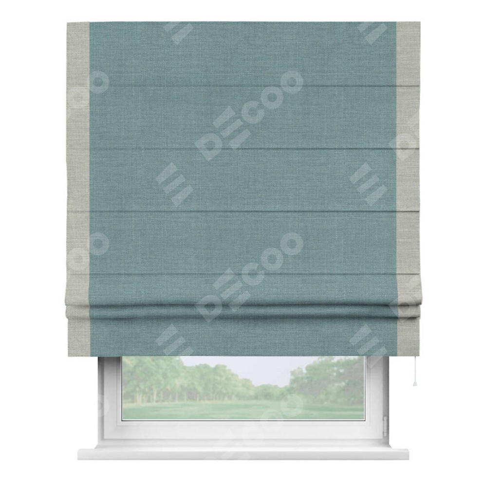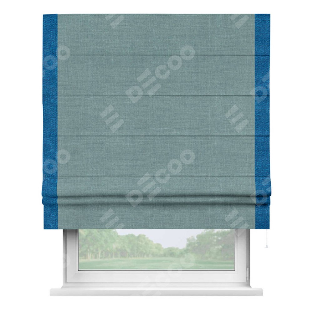 Римская штора с кантом Стрим Дуо, для проема, выполнена в ткани лён голубой