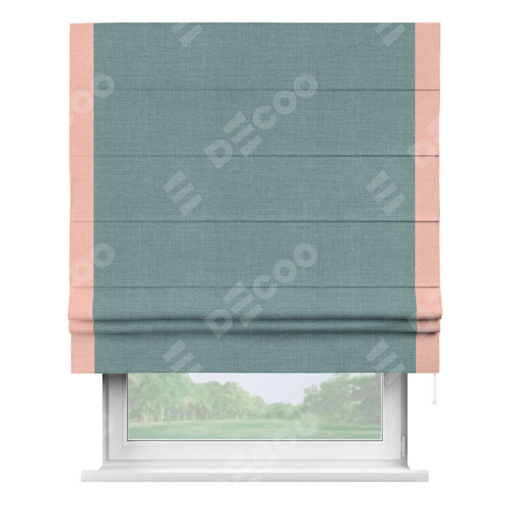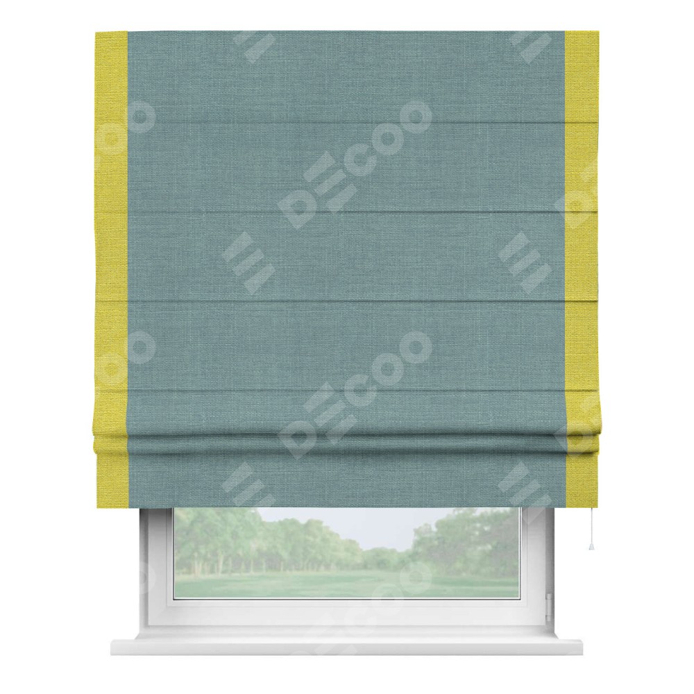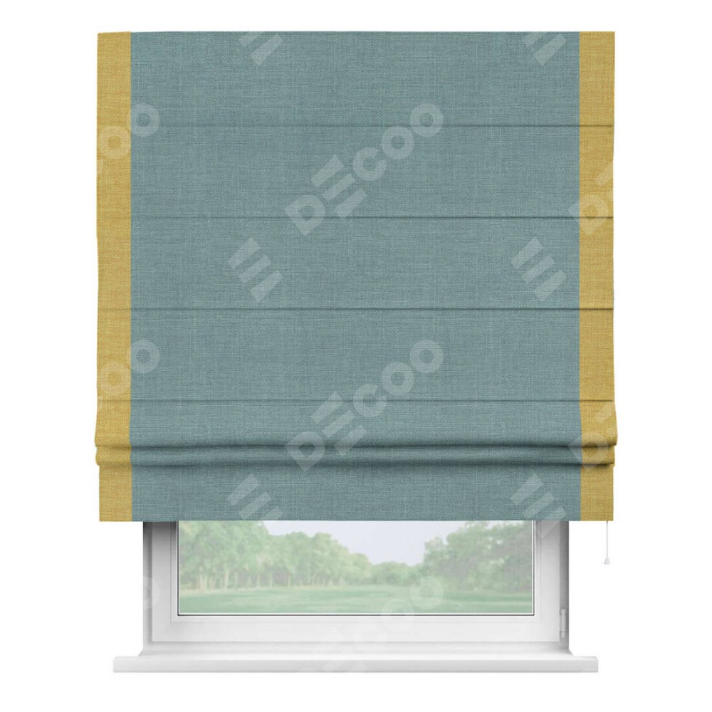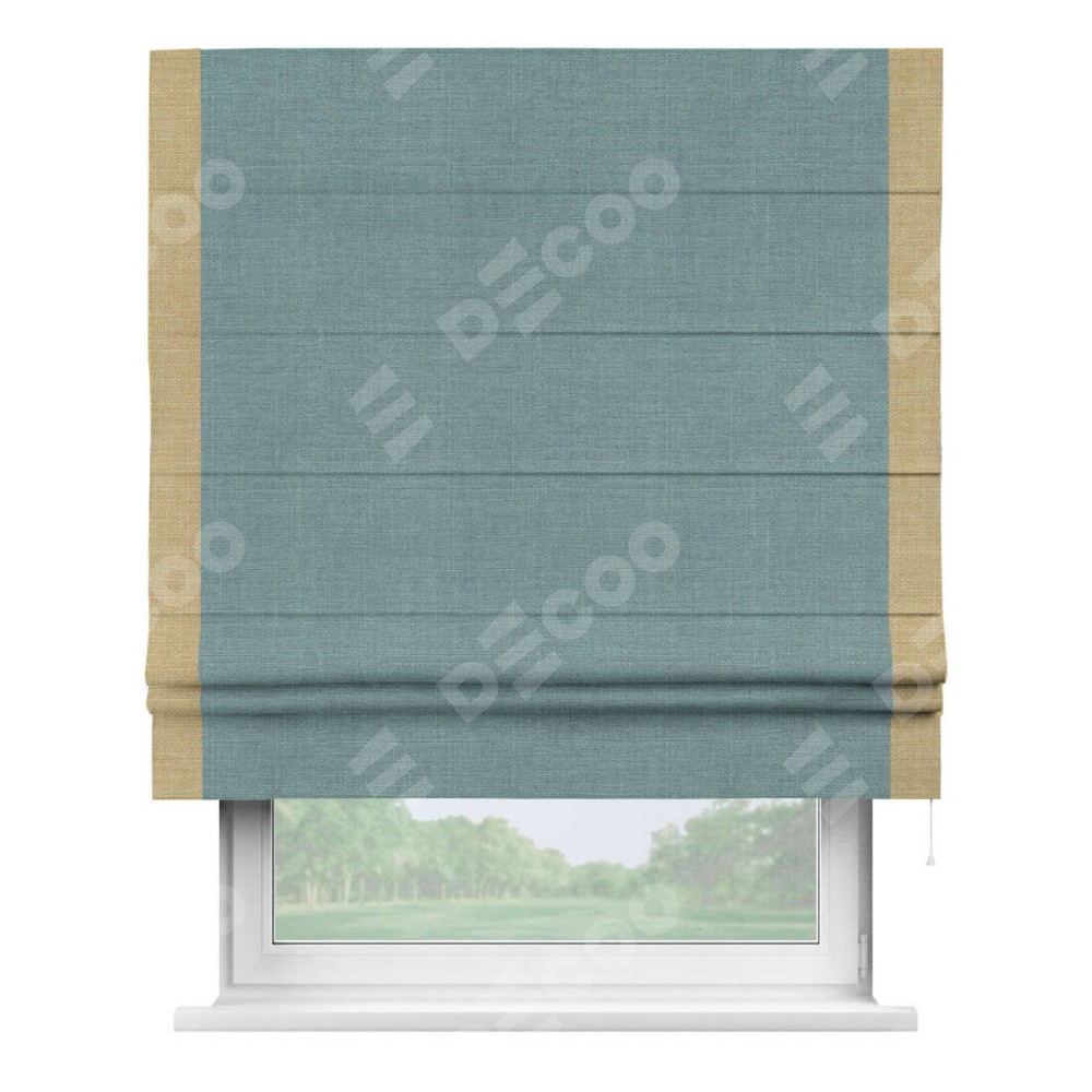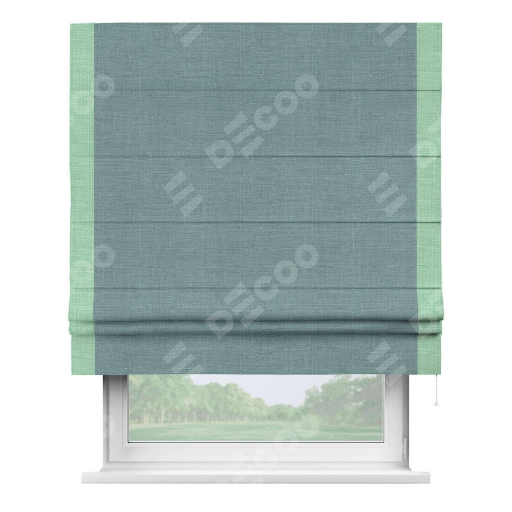 Римская штора с кантом Стрим Дуо, для проема, выполнена в ткани лён голубой