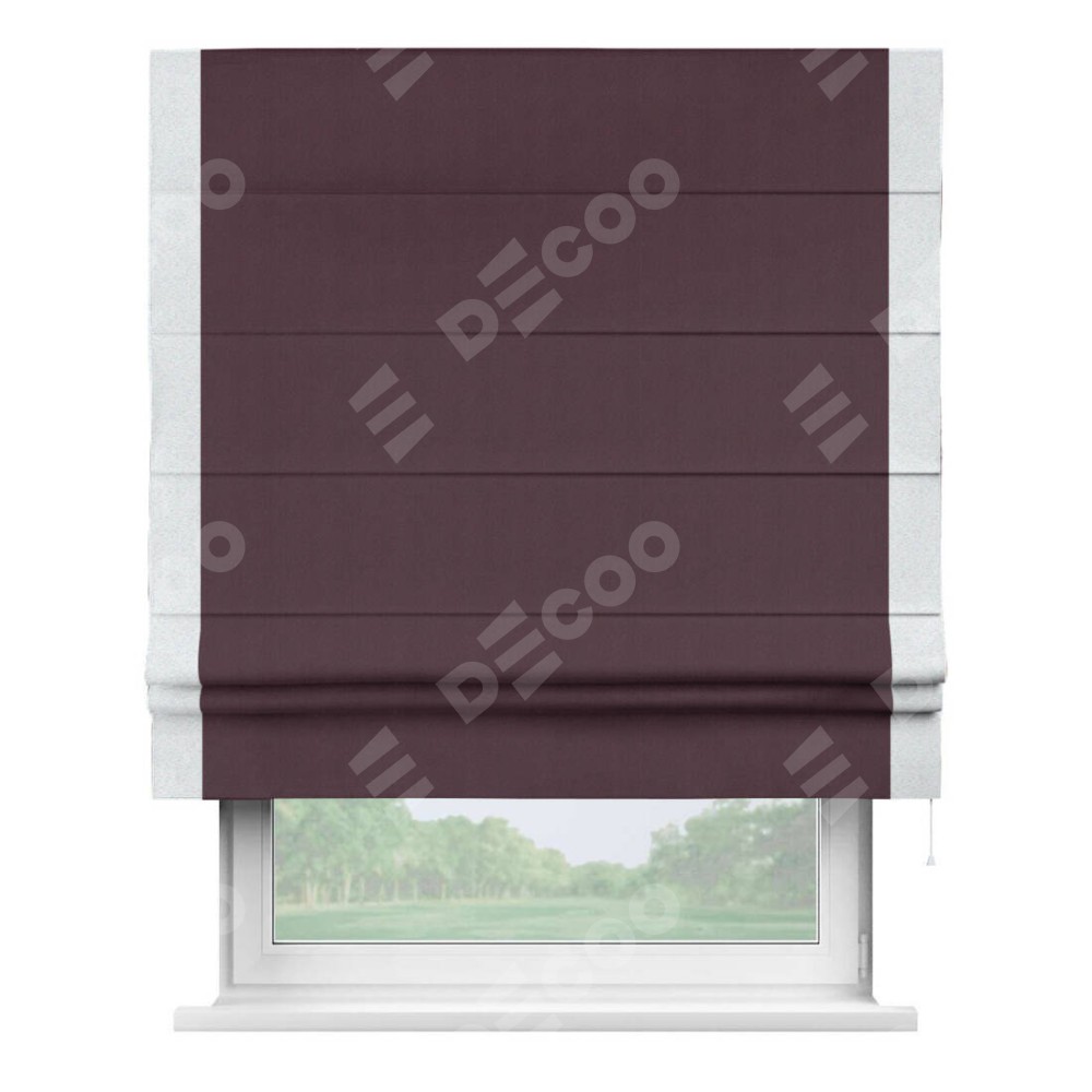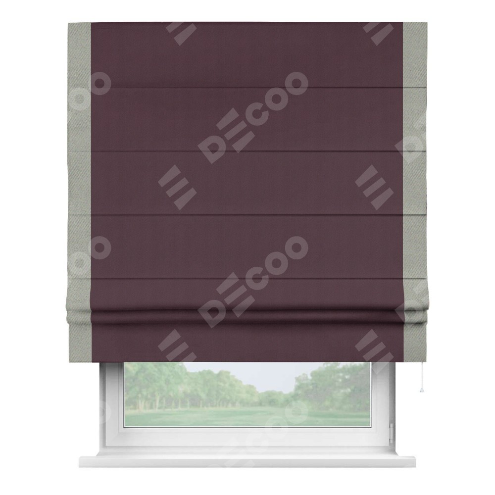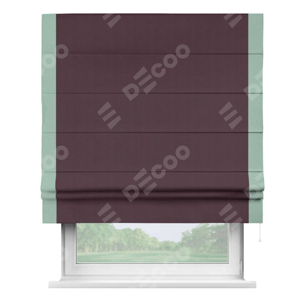 Римская штора производителя «Cortin», используется для проёма, пошита из ткани блэкаут однотонный сиреневый, артикул ткани 29333−2. Отделка шторы кантом «Стрим Дуо», ткань для канта используется из блэкаута однотонного разной расцветки на выбор. Имеет универсальный механизм и подходит для монтажа: на потолок, на стену и в нишу.