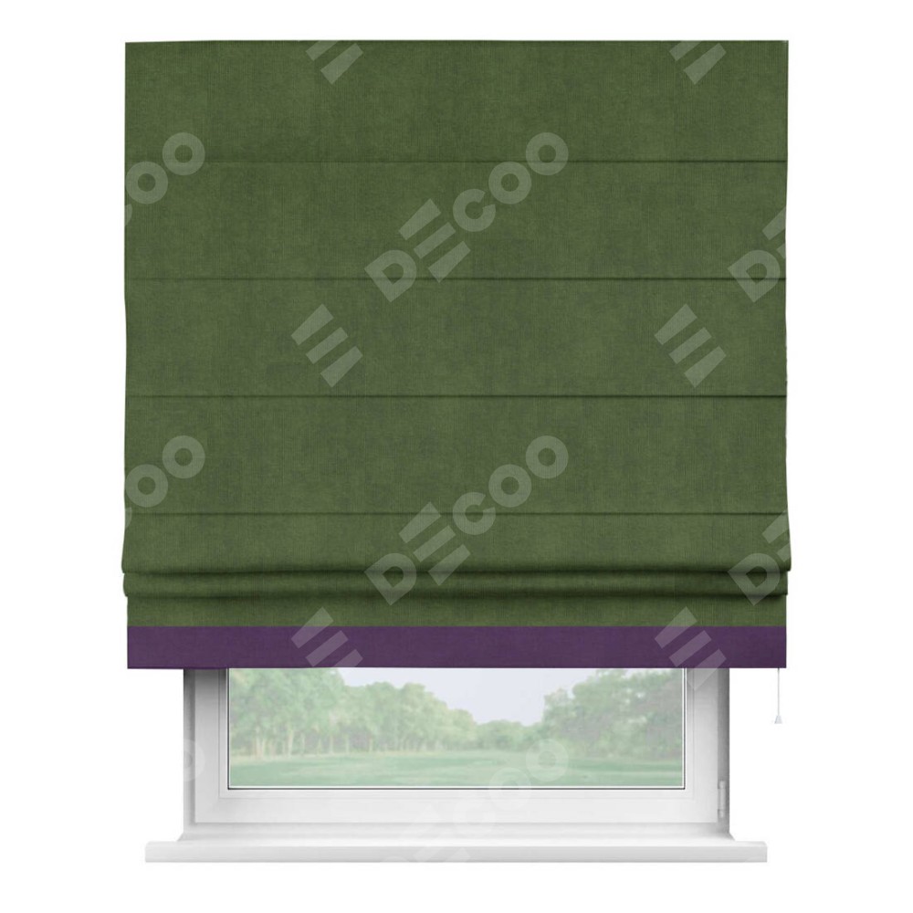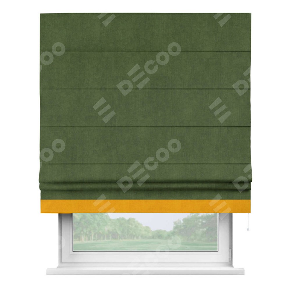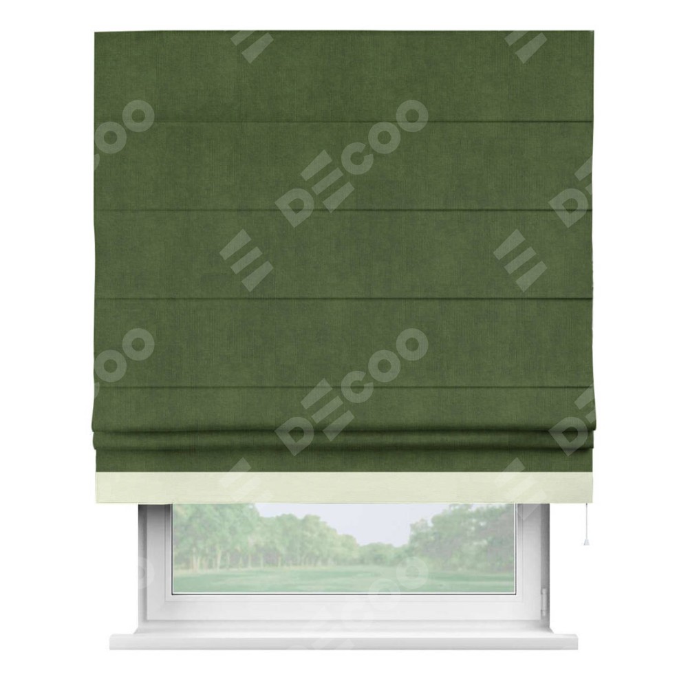 Римская штора «Кортин» с кантом Джестер, для проема, ткань вельвет тёмно-салатовый