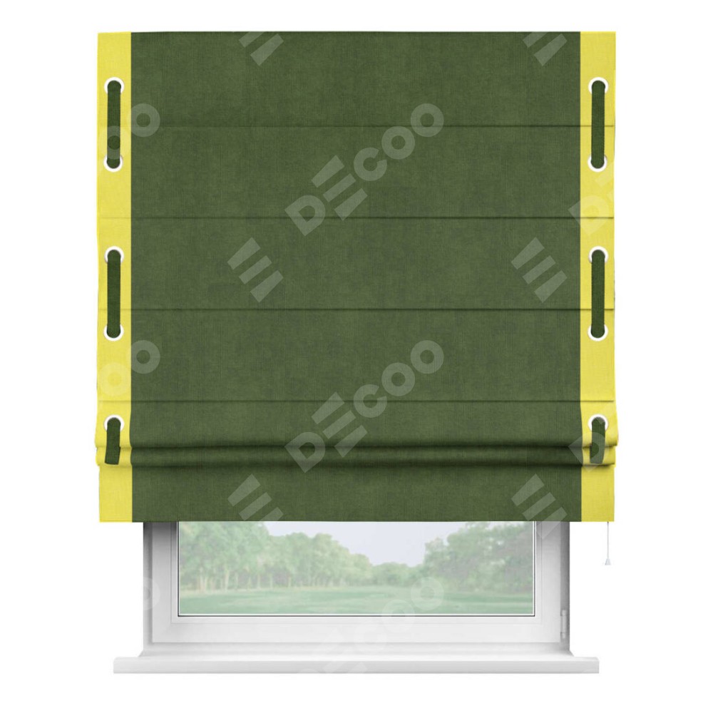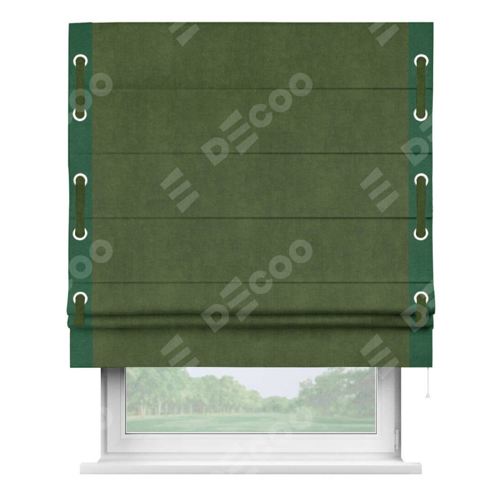 Римская штора «Кортин» с кантом Стрим Дуо (люверсы с пояском), для проема, ткань вельвет тёмно-салатовый