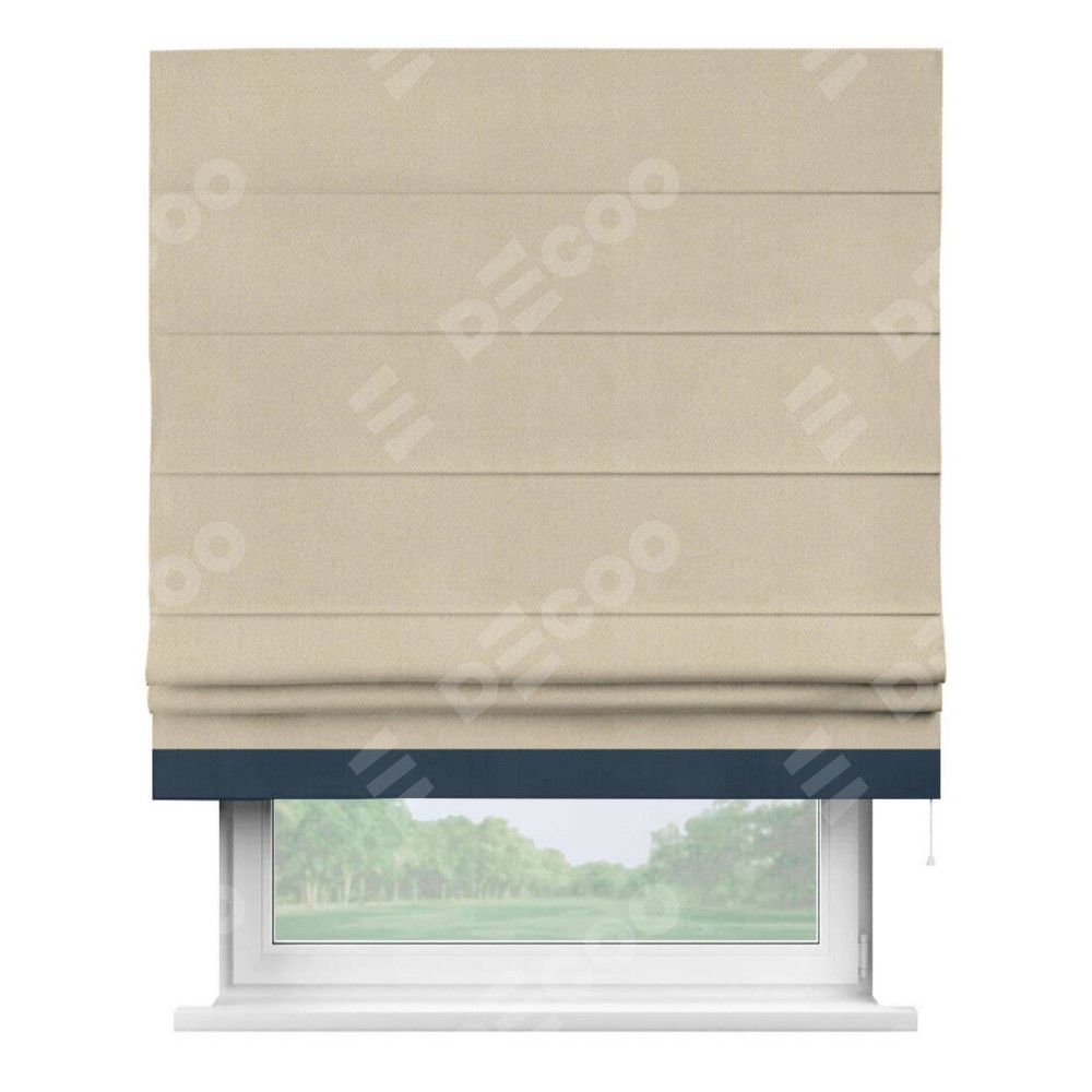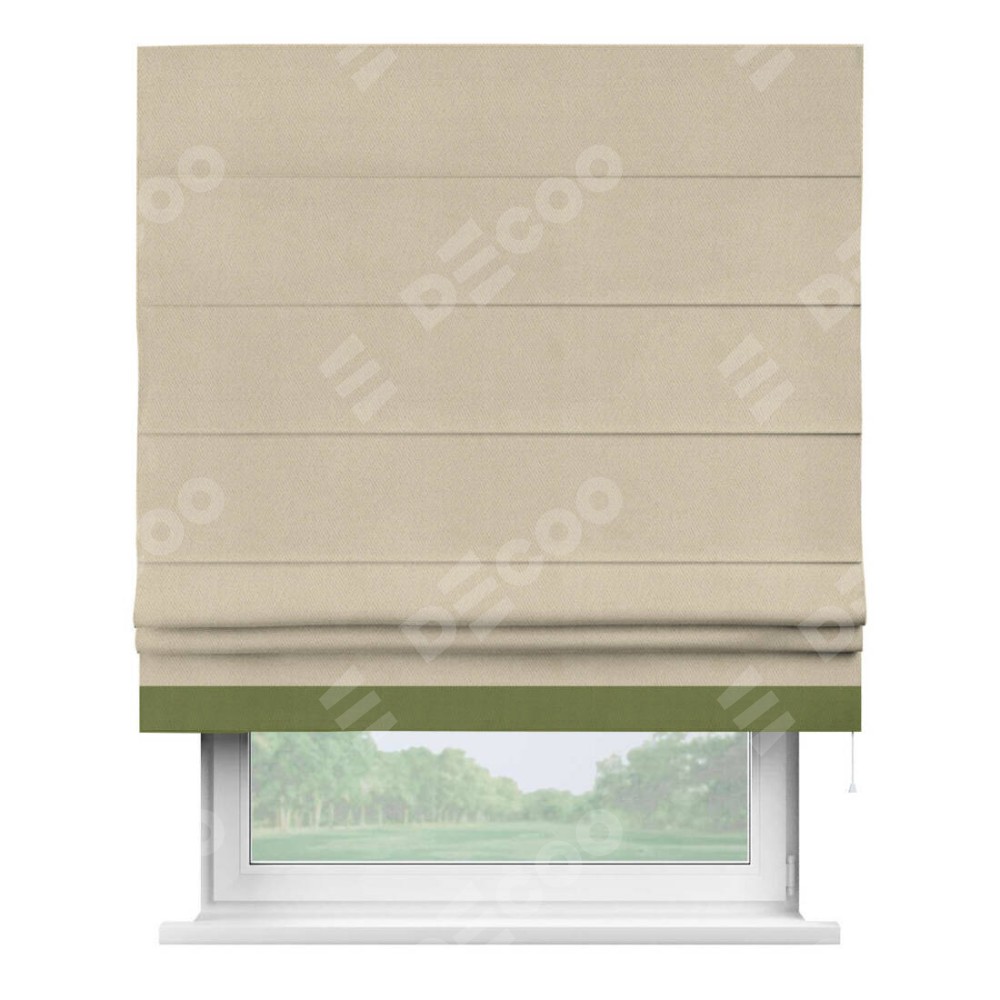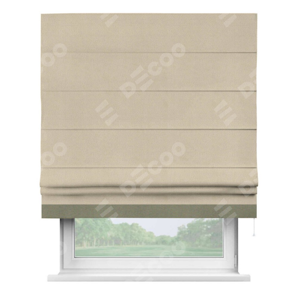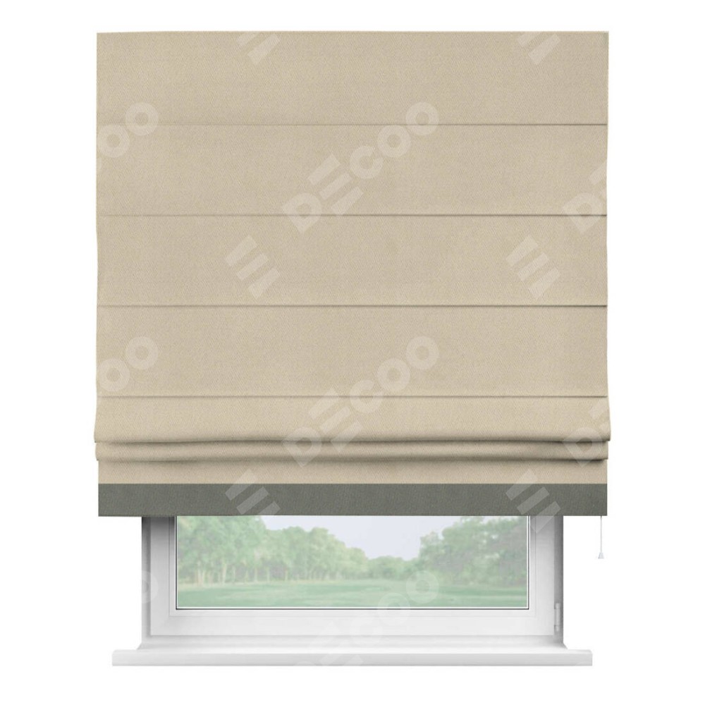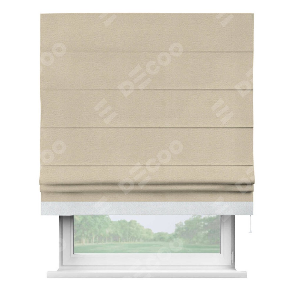 Римская штора производителя «Cortin», используется для проёма, пошита из ткани блэкаут однотонный кофейно-бежевый, артикул ткани 12095−1. Отделка шторы кантом «Джестер», ткань для канта используется из блэкаута однотонного разной расцветки на выбор. Имеет универсальный механизм и подходит для монтажа: на потолок, на стену и в нишу.