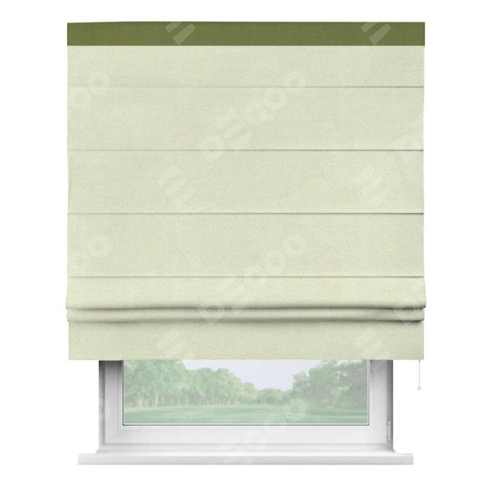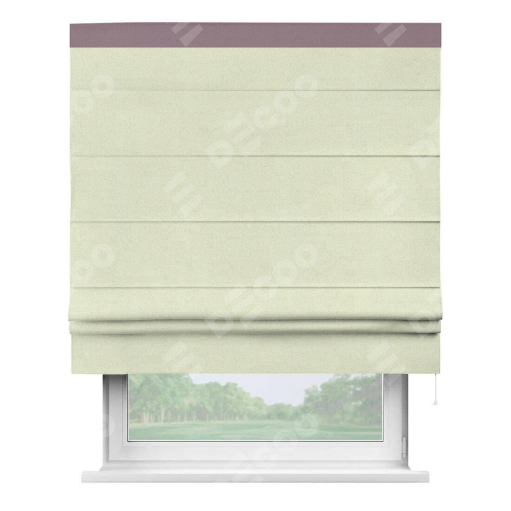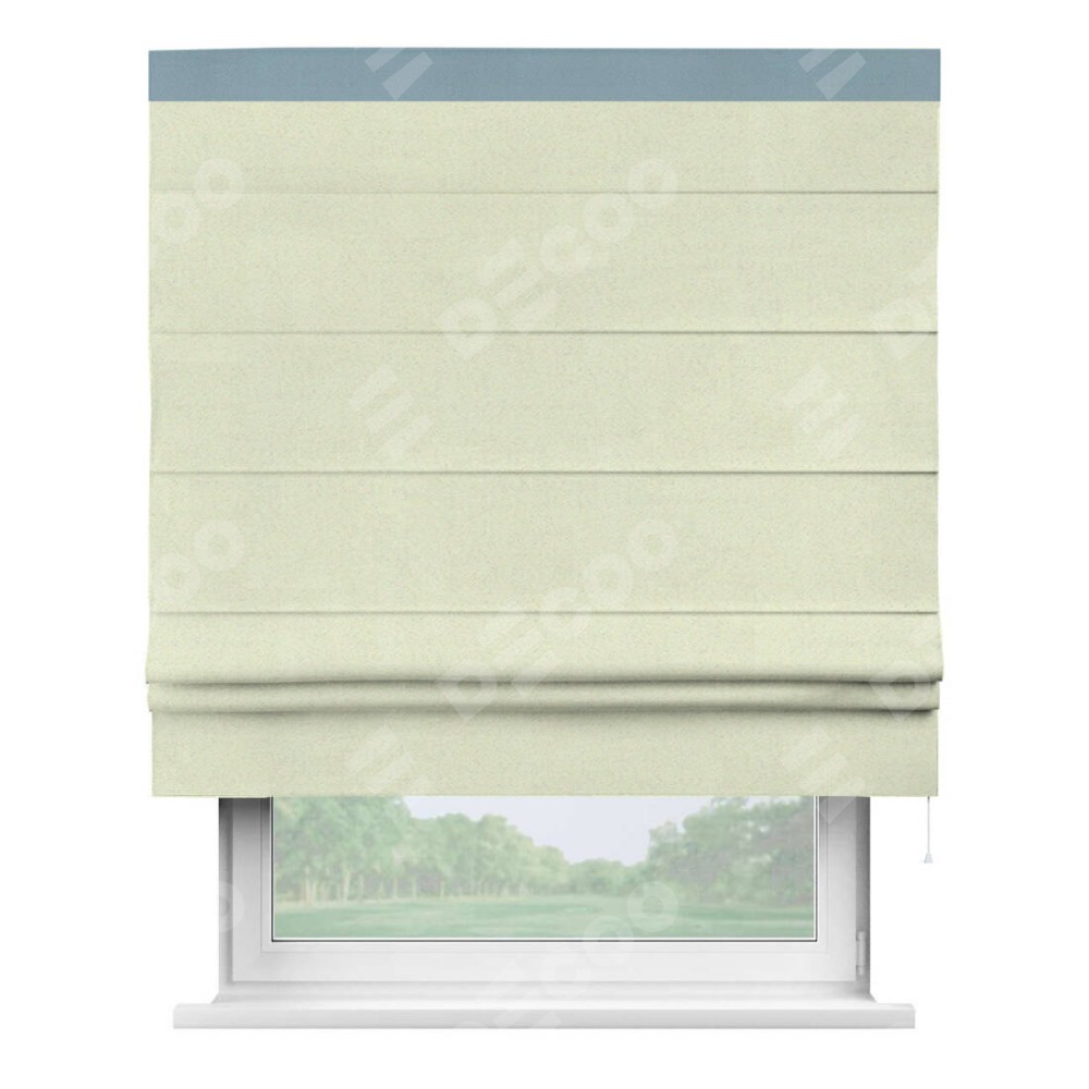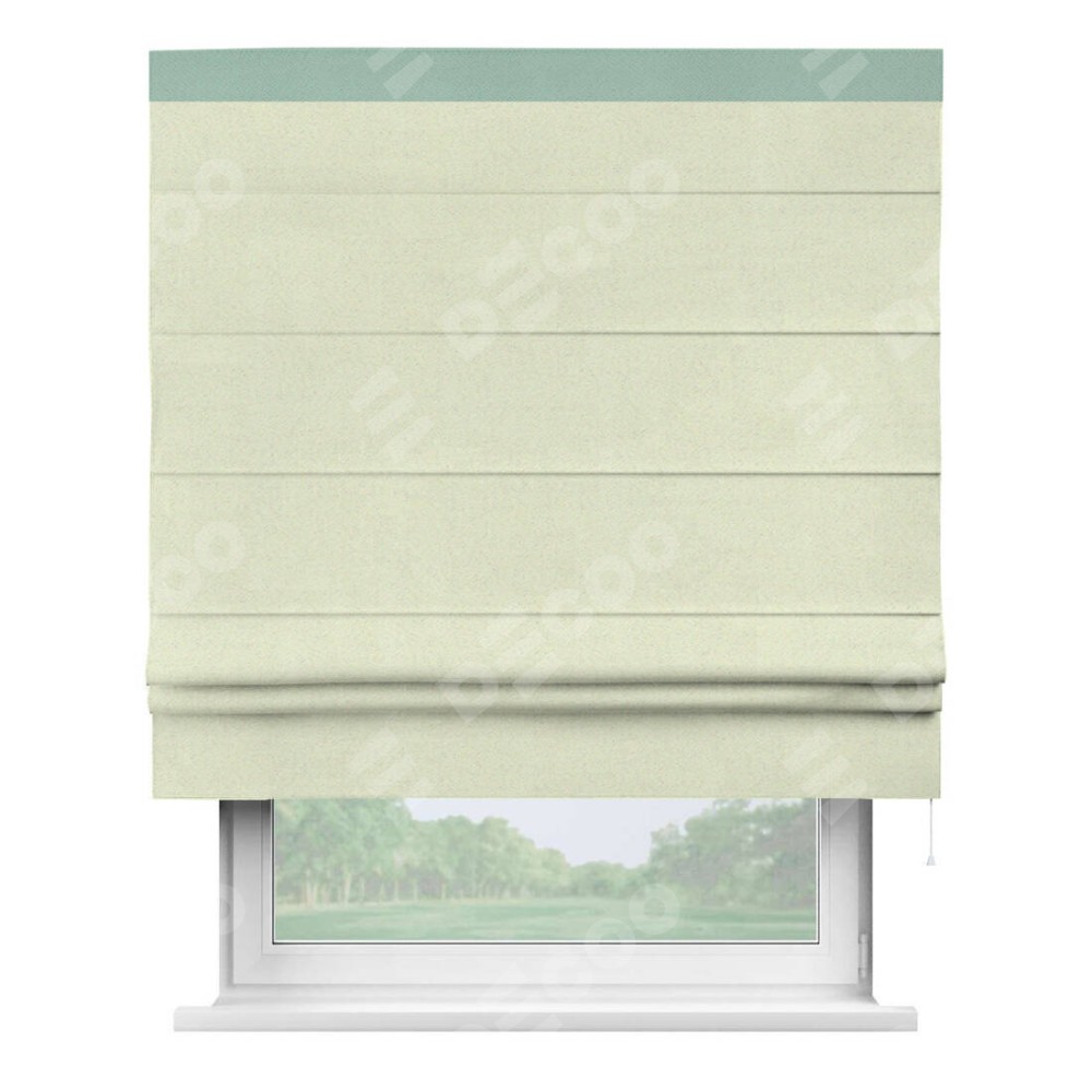 Римская штора производителя «Cortin», используется для проёма, пошита из ткани блэкаут однотонный сливочный, артикул ткани 6668−02. Отделка шторы кантом «Кинг», ткань для канта используется из блэкаута однотонного разной расцветки на выбор. Имеет универсальный механизм и подходит для монтажа: на потолок, на стену и в нишу.