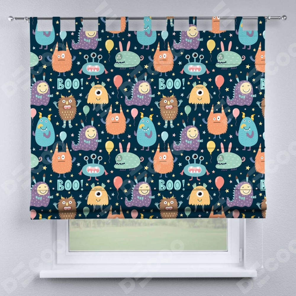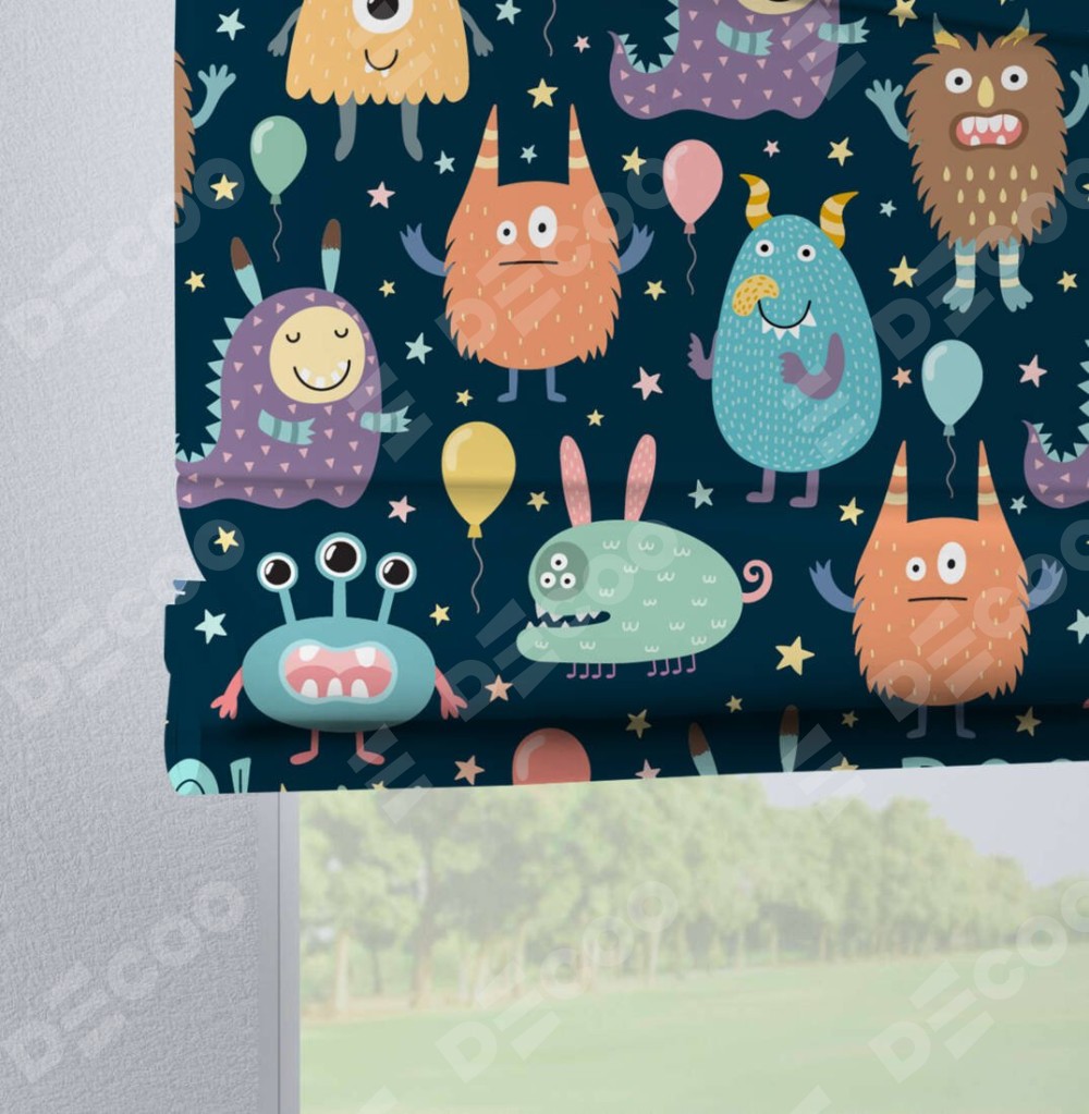 Римская штора на петлях «Звёздные страшилки» отлично подойдёт для интерьера: в детскую.