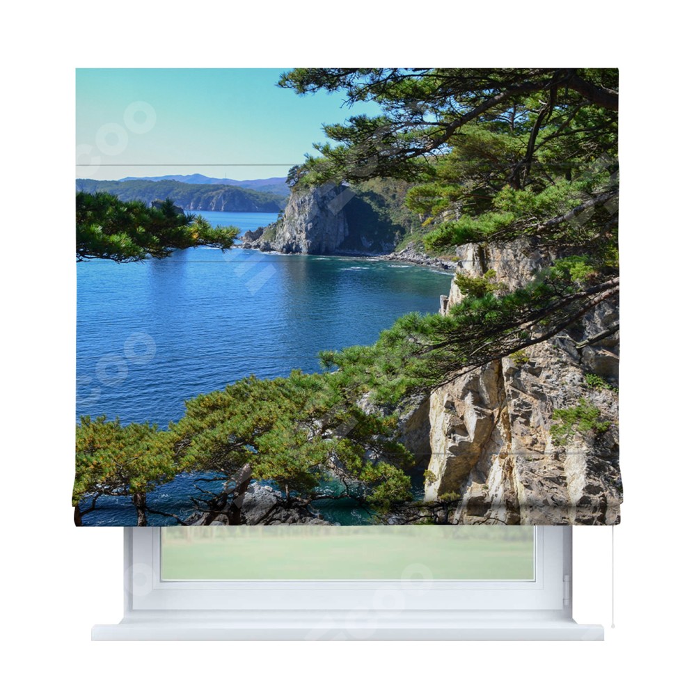 Римская штора «Кортин» для проема «Море и сосны» предоставлена в следующих характеристиках: