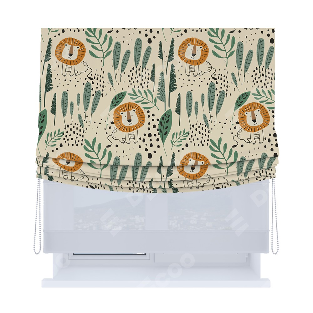 Римская штора «Кортин», день-ночь с мягкими складками, «Лев из джунглей»