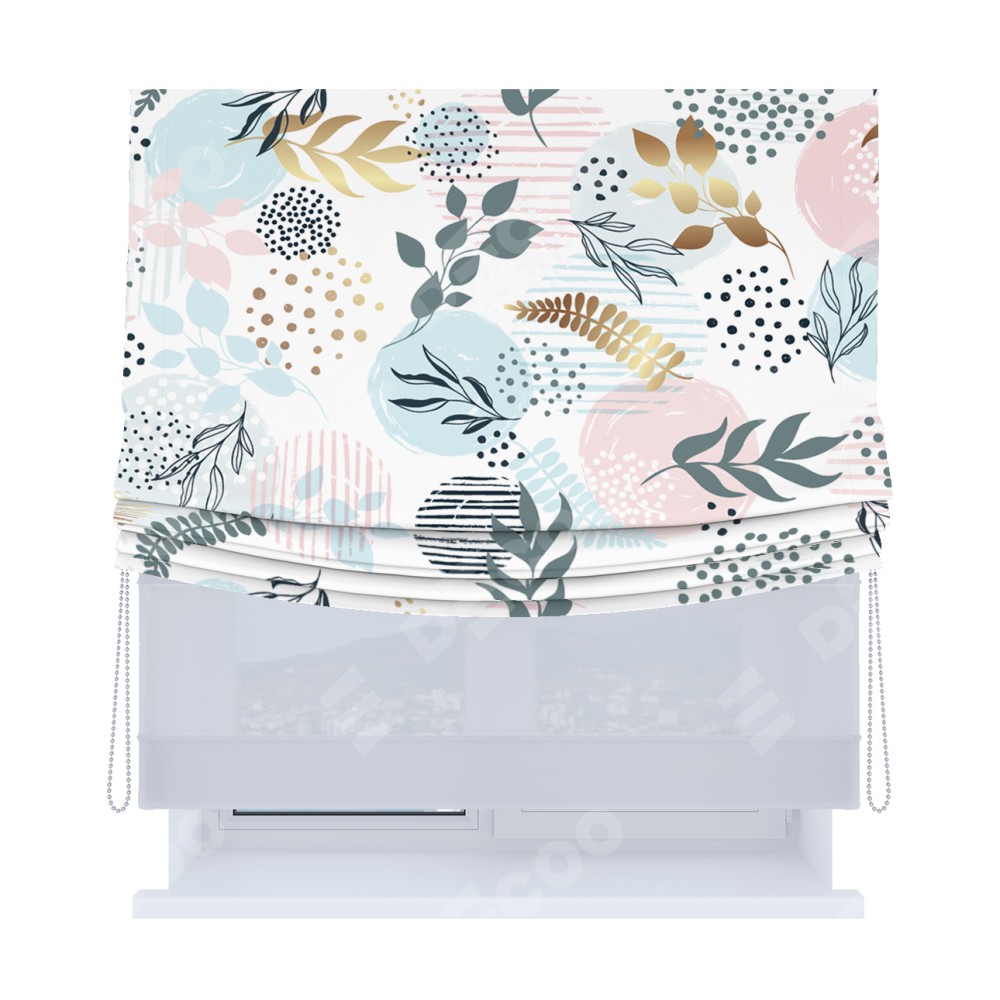 Римская штора «Кортин», день-ночь с мягкими складками, «Точки и листочки»