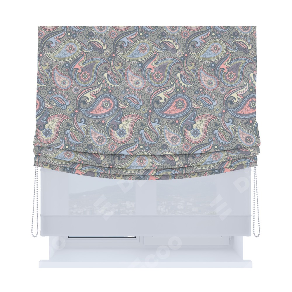 Римская штора «Кортин», день-ночь с мягкими складками, «Цветной пейсли»