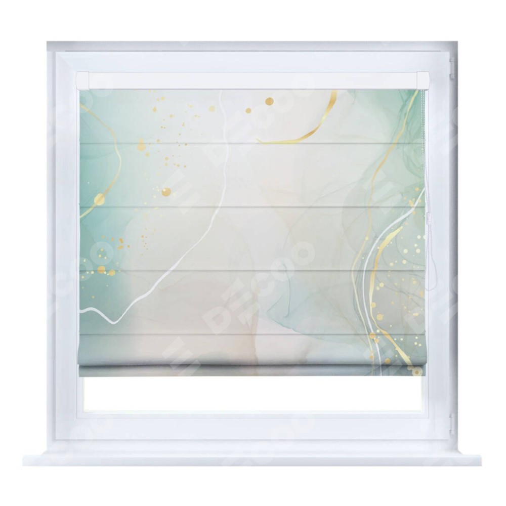 Римская штора производителя «Cortin», устанавливается на створку окна, пошита из ткани блэкаут с нанесением сублимационной печати «Изумрудно-серый мрамор». Штора шьётся по индивидуальным размерам, для данного типа римской шторы возможная ширина от 35 до 150 см., высота до 250 см.