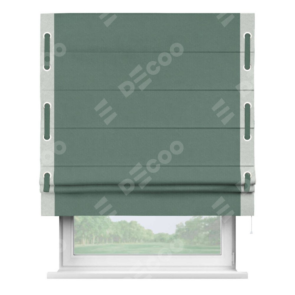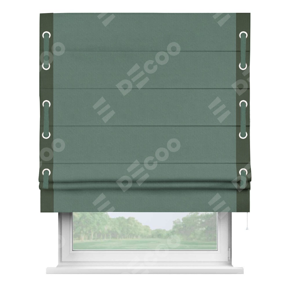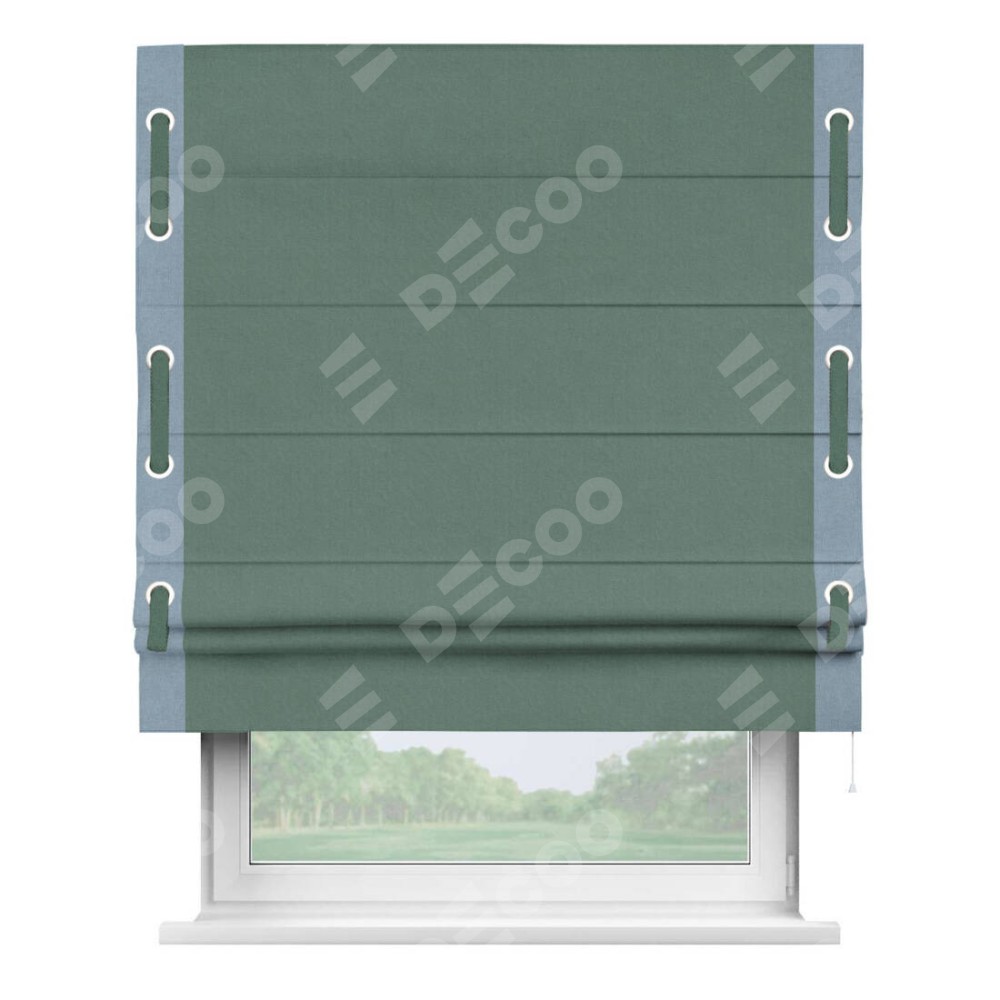 Римская штора «Кортин» с кантом Стрим Дуо (люверсы с пояском), для проема, лён блэкаут бирюзовый