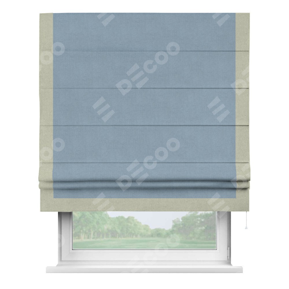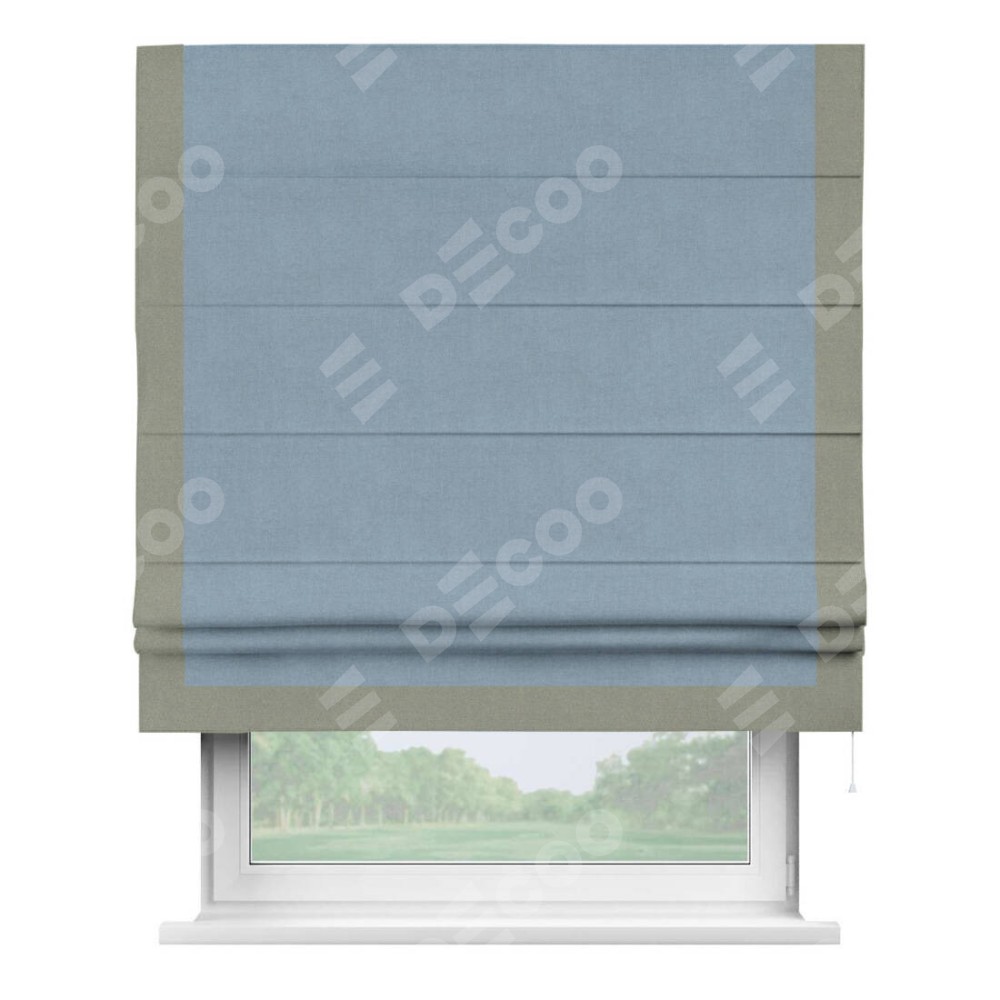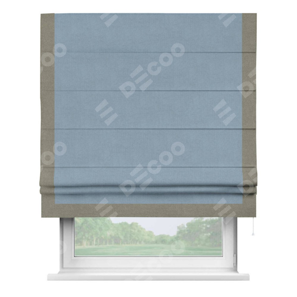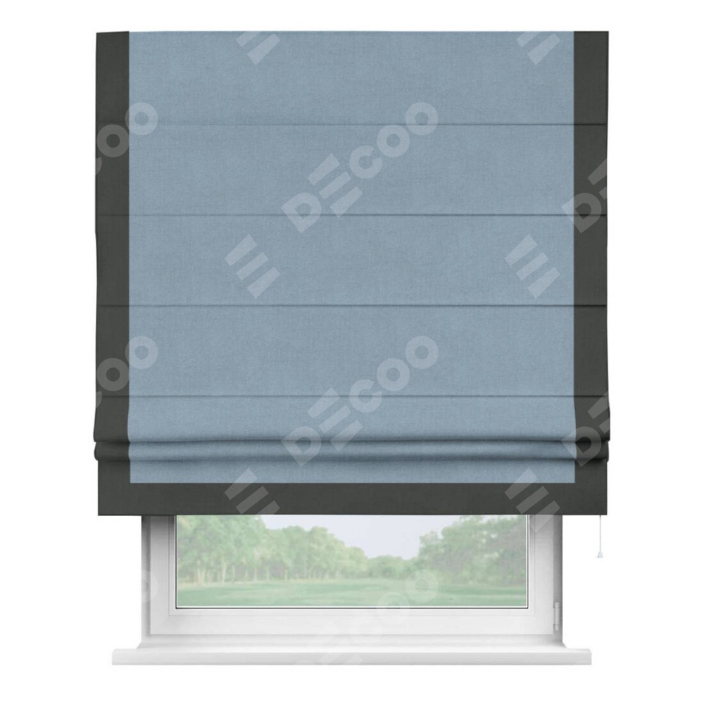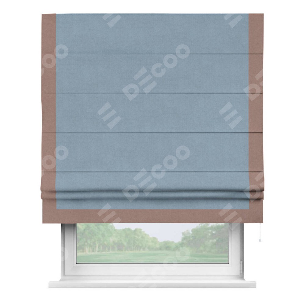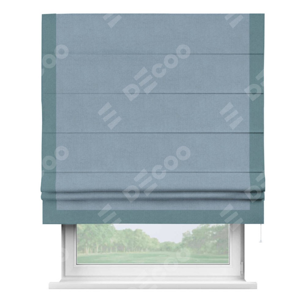 Римская штора «Кортин» с кантом Виктория, для проема, лён блэкаут голубой