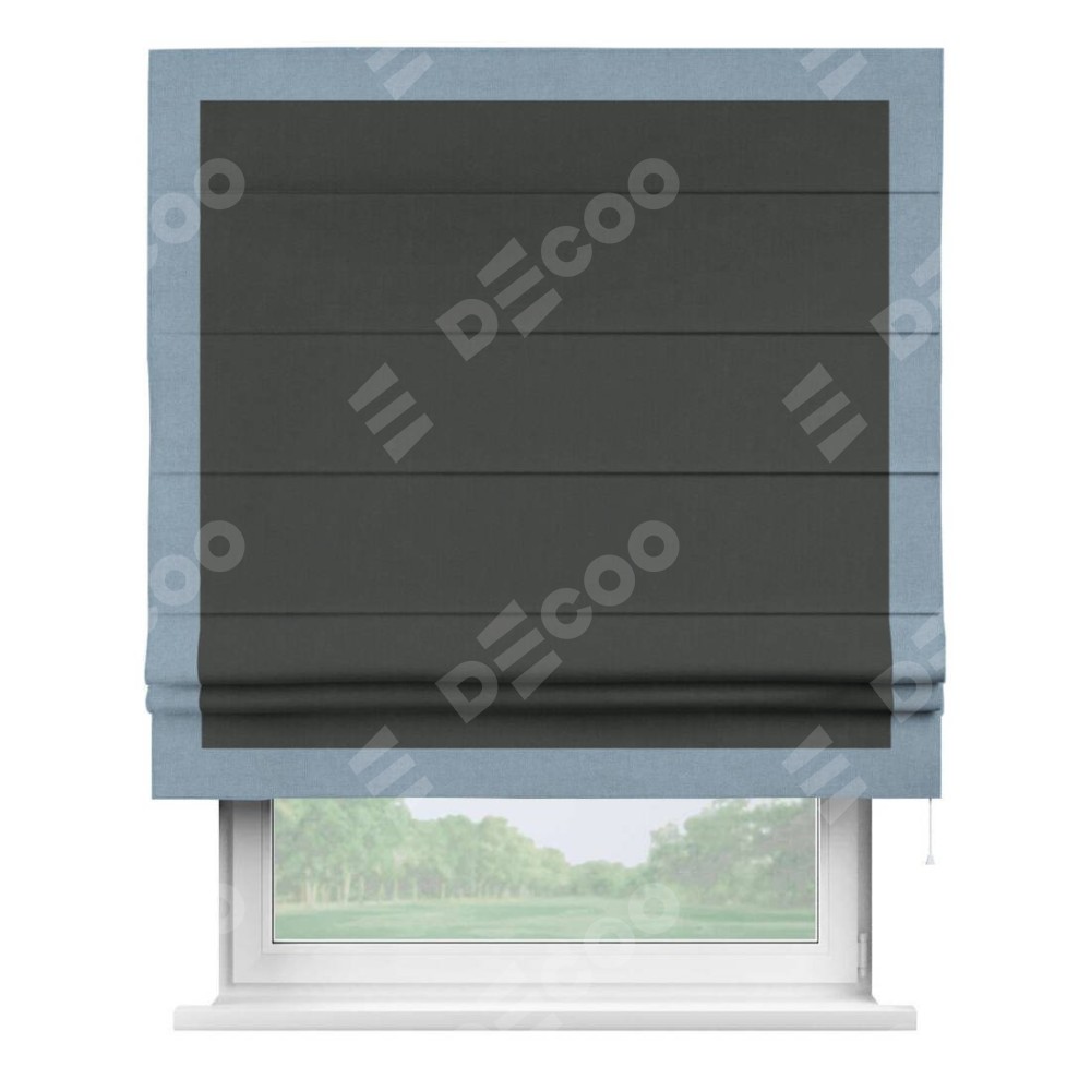 Римская штора «Кортин» с кантом Чесс, для проема, лён блэкаут графит