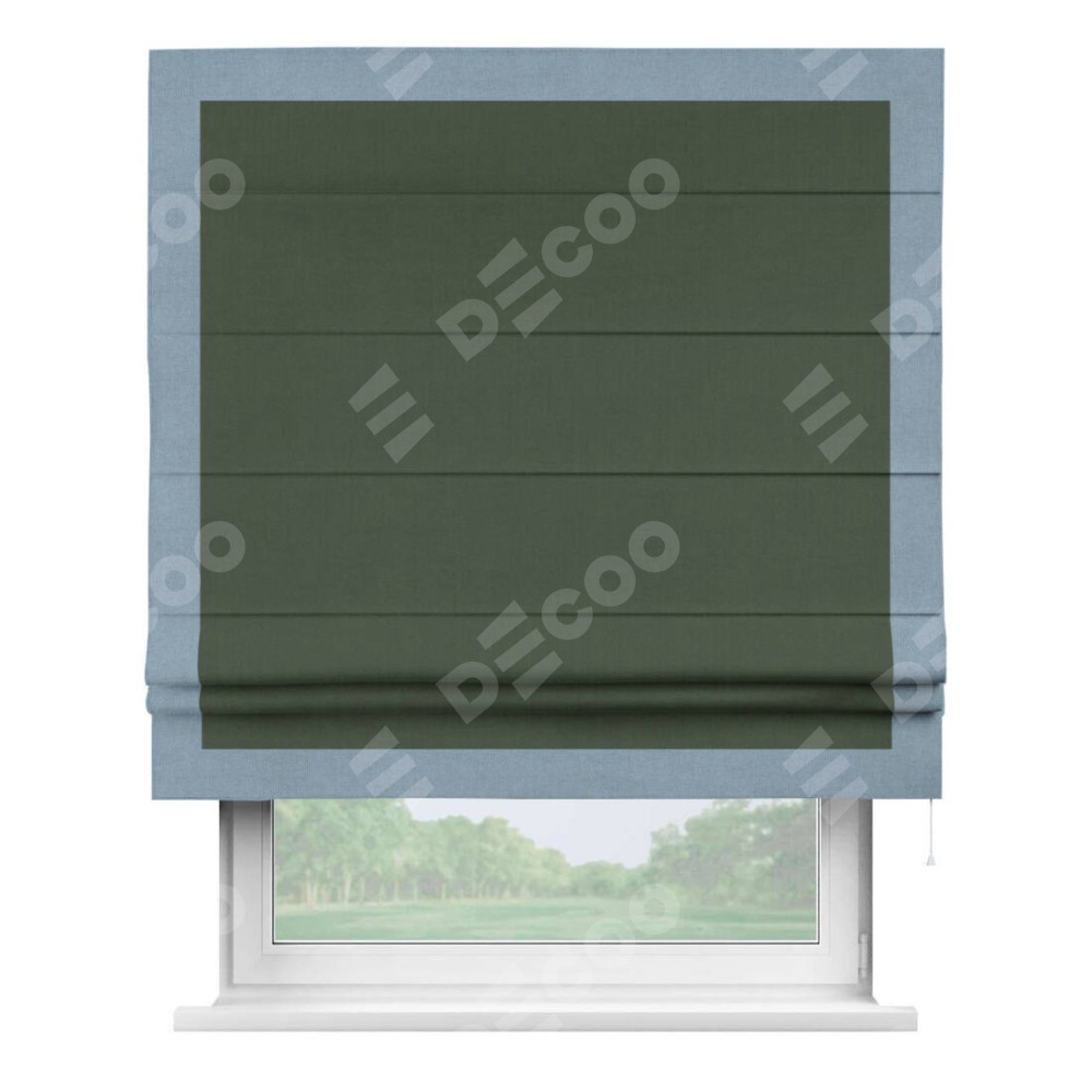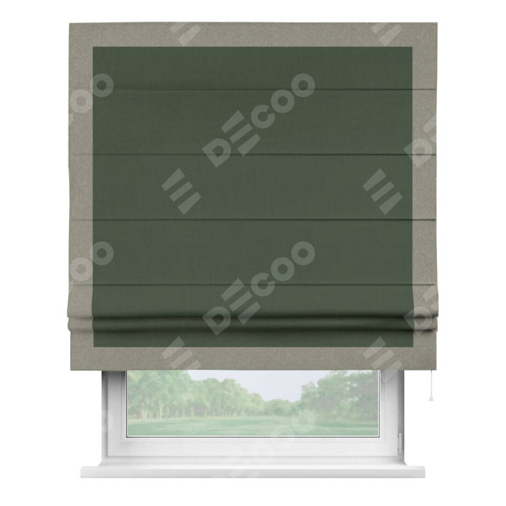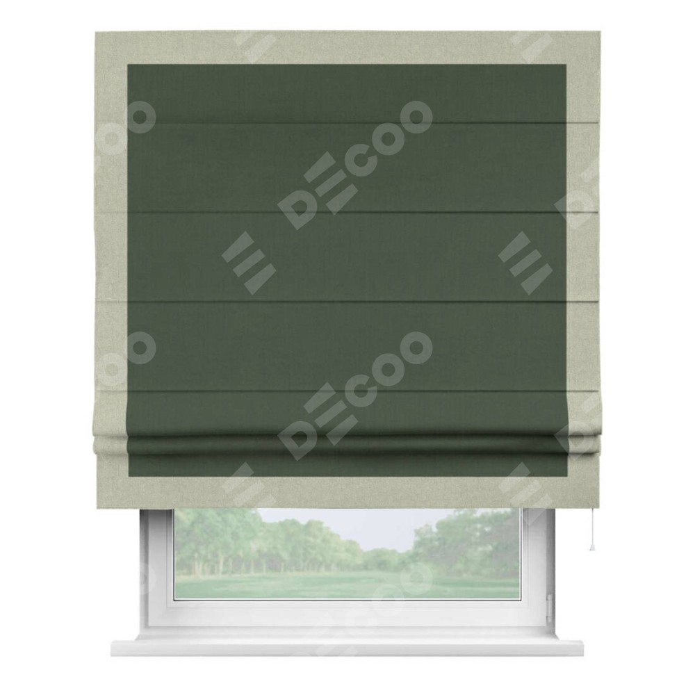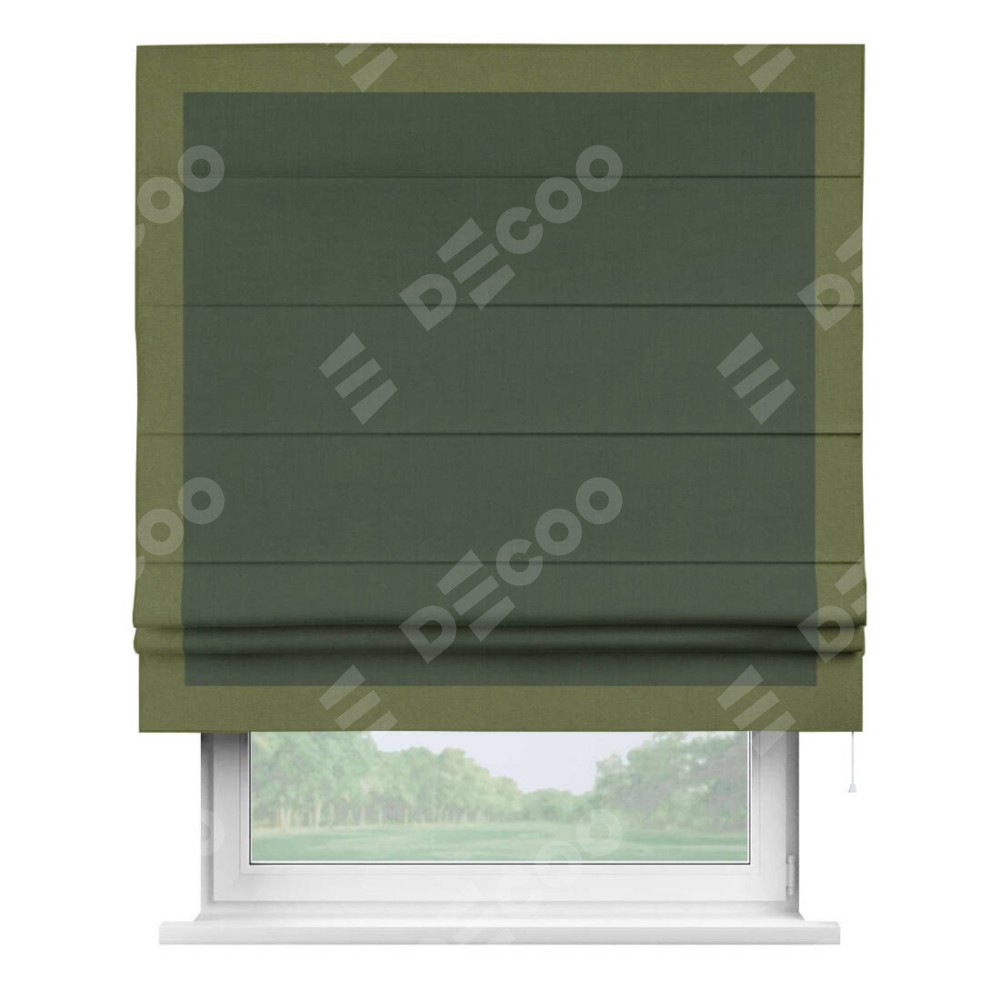Римская штора «Кортин» с кантом Чесс, для проема, лён блэкаут зелёный