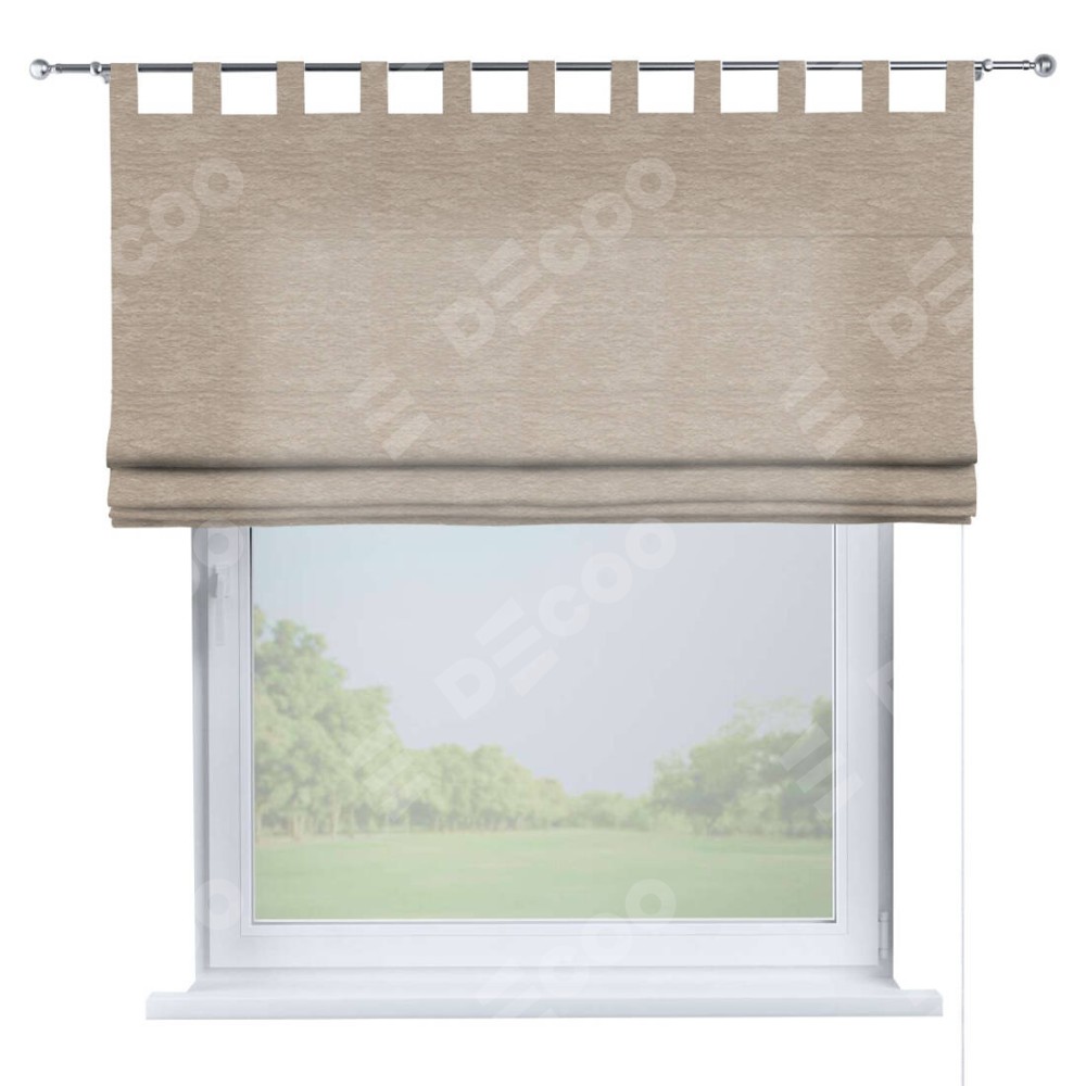 Римская штора производителя «Cortin», используется для проёма, пошита из ткани софт однотонный тёмно-бежевый, артикул ткани 1640. Данная модель пошита на петлях, комплектуется на выбор круглым карнизом и подходит для монтажа на стену. Римская штора на петлях имеет простую систему регулировки высоты, отличительным преимуществом данной модели является простой способ монтажа. Достаточно повесить ее на трубу и штора готова!