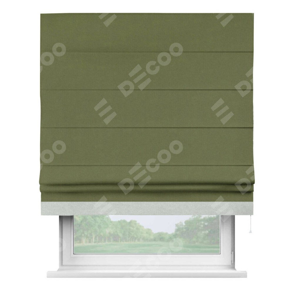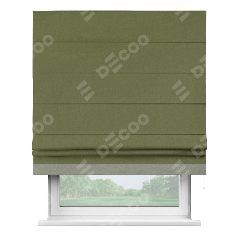 Римская штора «Кортин» с кантом Джестер, для проема, лён блэкаут оливковый