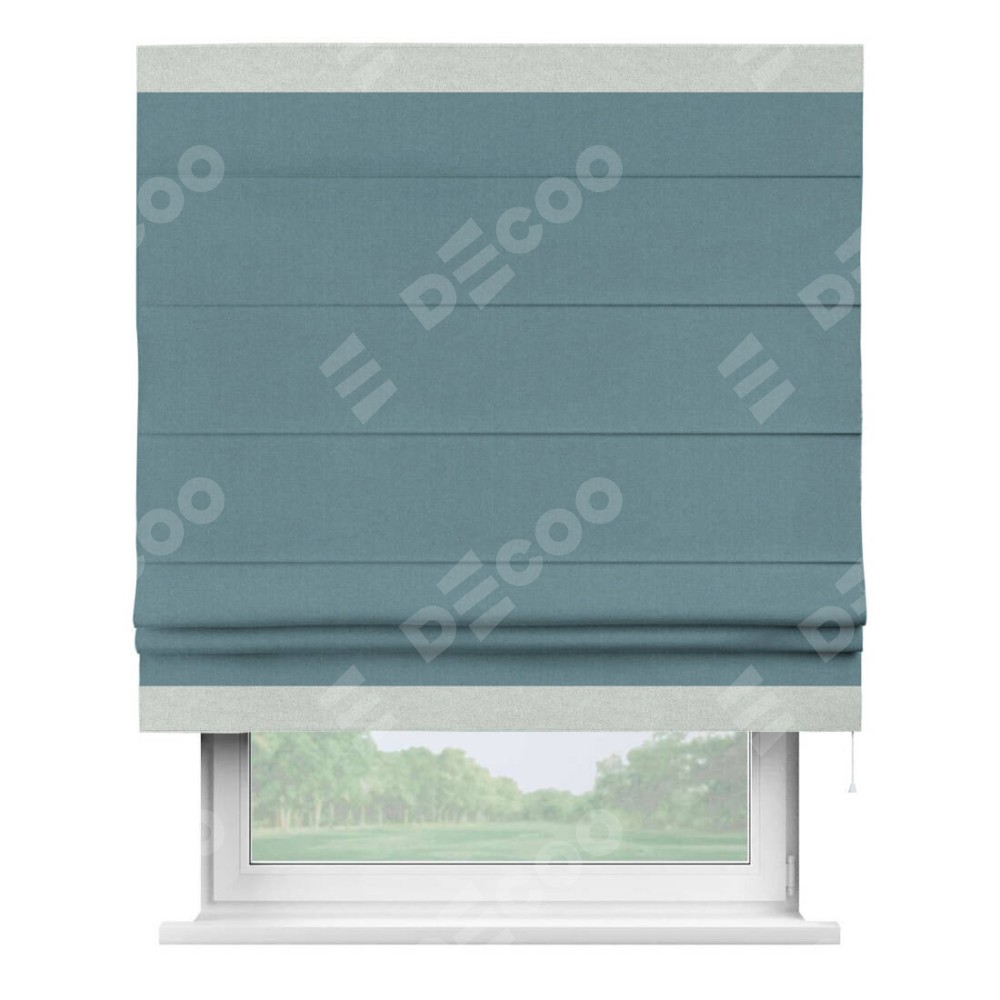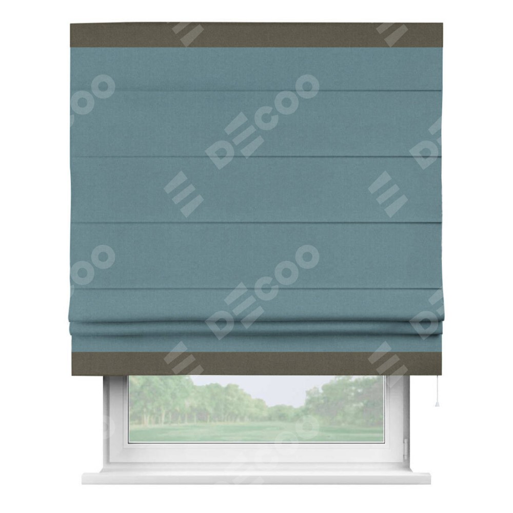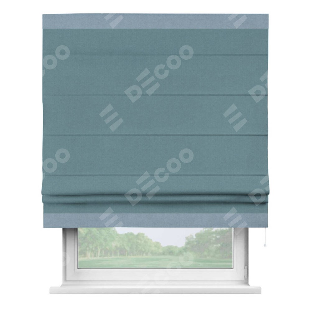 Римская штора «Кортин» с кантом Горизонт, для проема, лён блэкаут синий