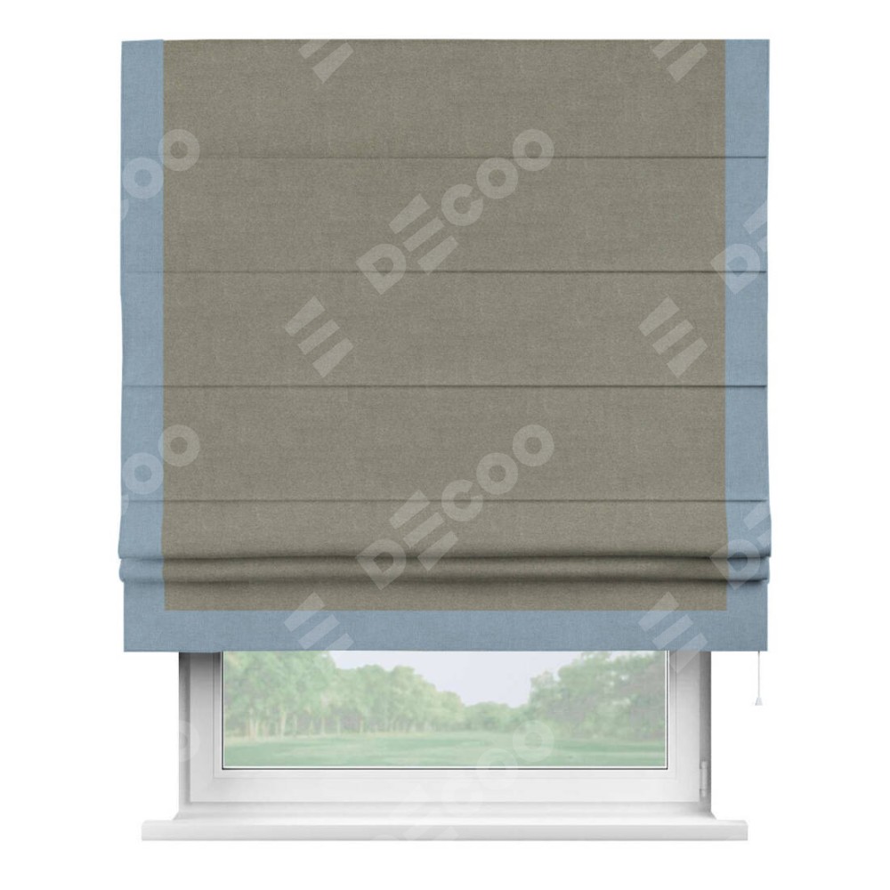 Римская штора производителя «Cortin», используется для проёма, пошита из ткани лён блэкаут шампань, артикул 69449. Отделка шторы кантом «Виктория», ткань для канта используется из льна разной расцветки на выбор. Имеет универсальный механизм и подходит для монтажа: на потолок, на стену и в нишу.