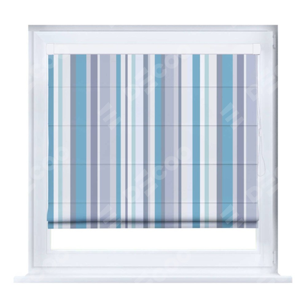 Римская штора производителя «Cortin», устанавливается на створку окна, пошита из ткани блэкаут с нанесением сублимационной печати «Морские линии». Штора шьётся по индивидуальным размерам, для данного типа римской шторы возможная ширина от 35 до 150 см., высота до 250 см.