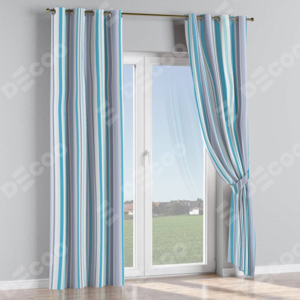 Комплект штор на люверсах «Морские линии» отлично подойдёт для интерьера комнату, кухня и загородный дом.