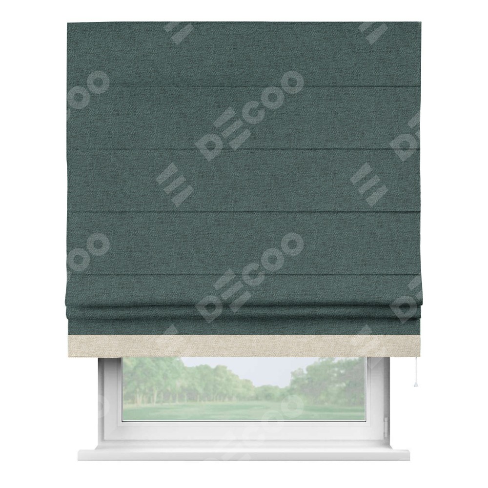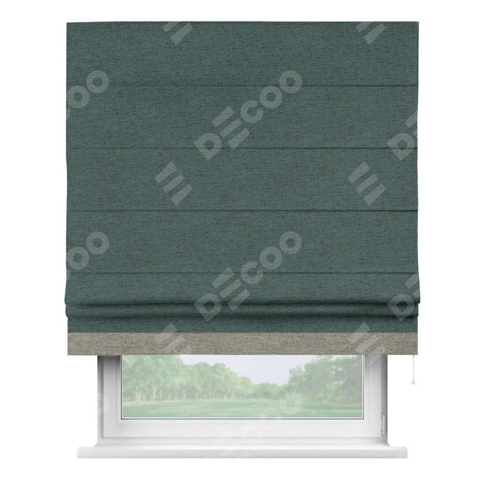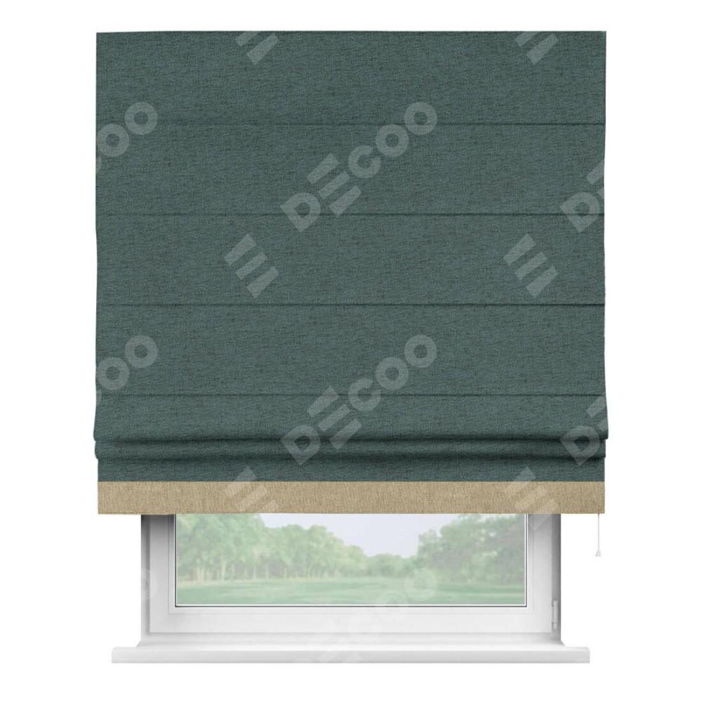 Римская штора «Кортин» с кантом Джестер, для проема, ткань стиф димаут сине-зелёный