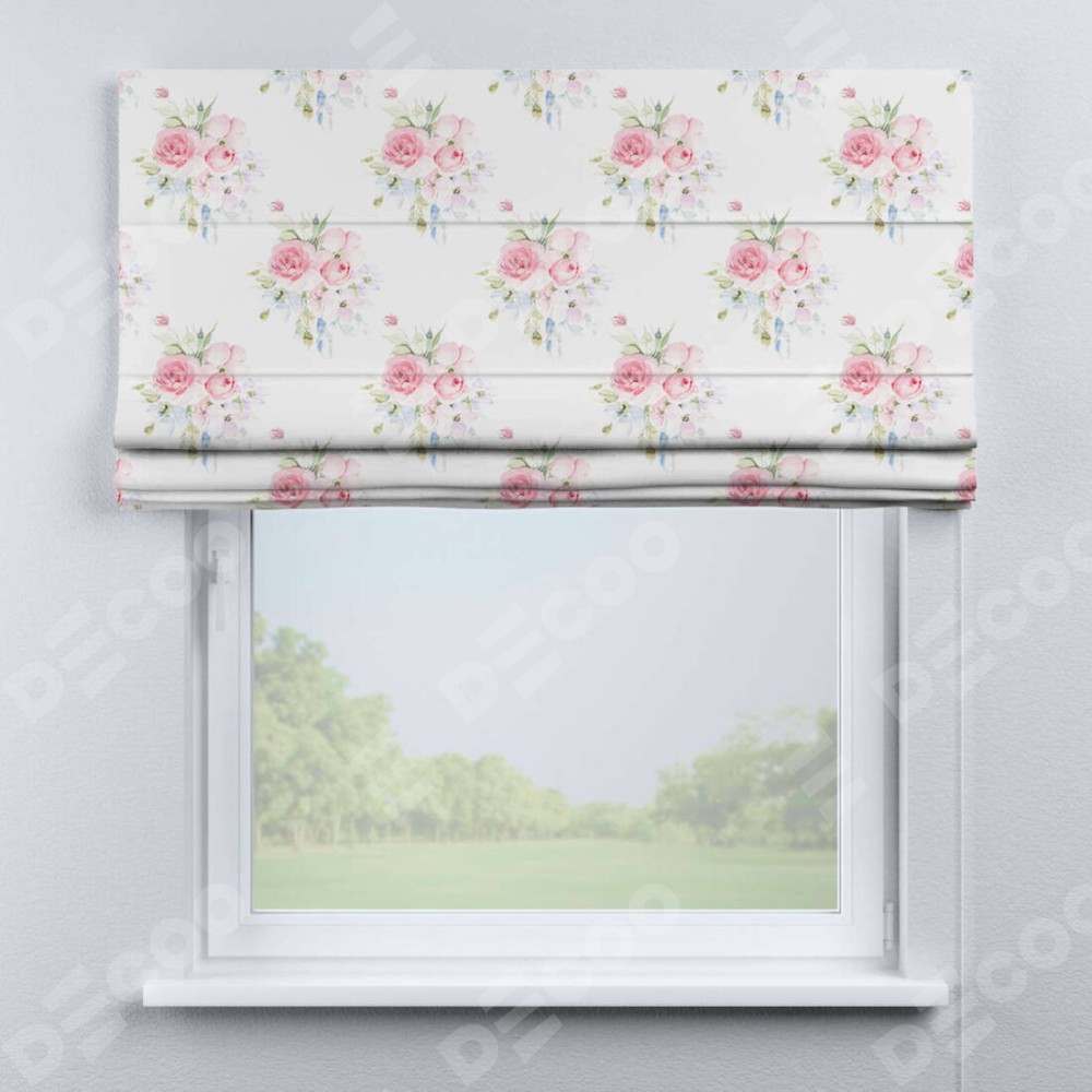 Римская штора производителя «Cortin», используется для проёма, пошита из ткани блэкаут с нанесением сублимационной печати «Нежный розарий». Имеет универсальный механизм и подходит для монтажа: на потолок, на стену и в нишу.