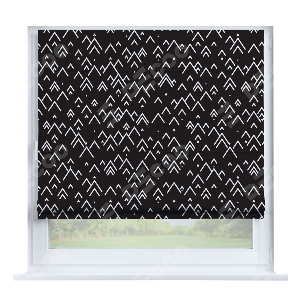 Римская штора производителя «Cortin», устанавливается на створку окна, пошита из ткани блэкаут с нанесением сублимационной печати «Черно-белый минимализм». Штора шьётся по индивидуальным размерам, для данного типа римской шторы возможная ширина от 35 до 150 см., высота до 250 см.