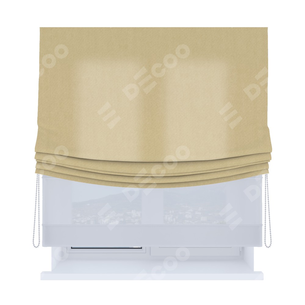 Римская штора день-ночь производителя «Cortin», используется для проёма, пошита из двух полотен, с лицевой стороны канвас бежевый артикул v-96, вторая ткань тюль (по стандарту комплектуется тюль белого цвета артикул V-01). Имеет универсальный механизм и подходит для монтажа: на потолок, на стену и в нишу. Удобное управление каждой шторой отдельно.