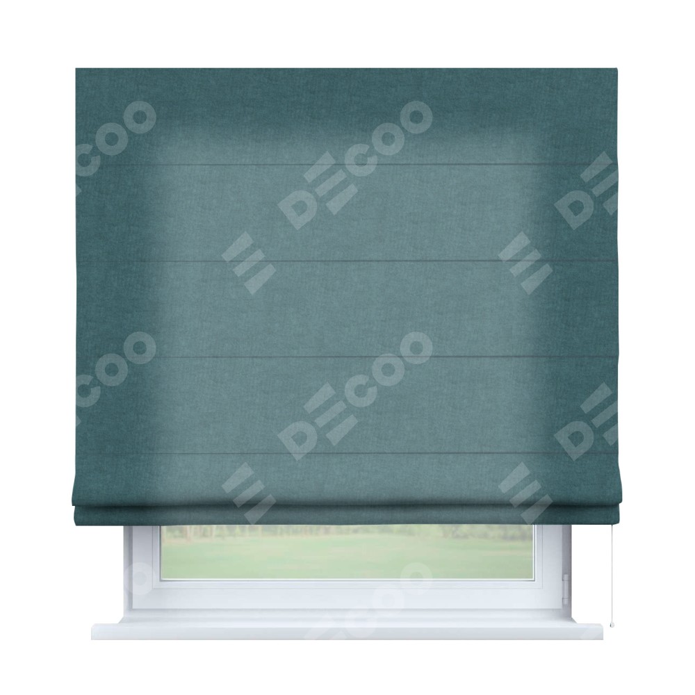 Римская штора производителя «Cortin», используется для проёма, пошита из ткани канвас ментоловый, артикул ткани v-114. Имеет универсальный механизм и подходит для монтажа: на потолок, на стену и в нишу.