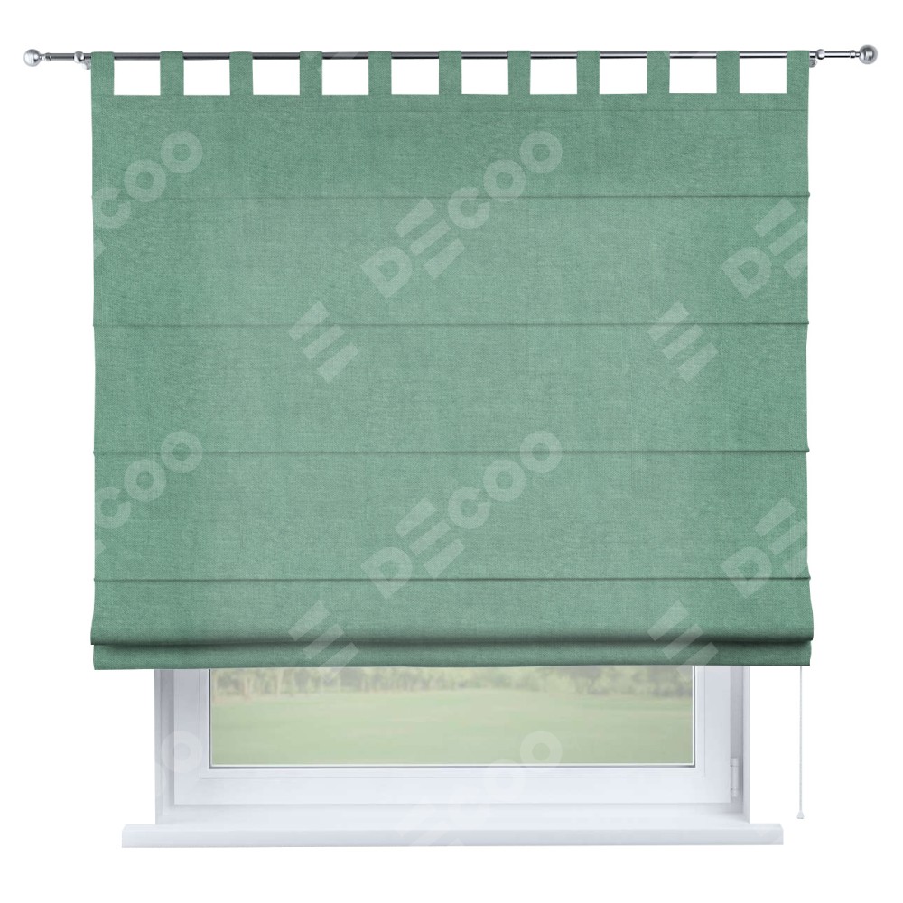 Римская штора производителя «Cortin», используется для проёма, пошита из ткани канвас мятный, артикул ткани v-248. Данная модель пошита на петлях, комплектуется на выбор круглым карнизом и подходит для монтажа на стену. Римская штора на петлях имеет простую систему регулировки высоты, отличительным преимуществом данной модели является простой способ монтажа. Достаточно повесить ее на трубу и штора готова!